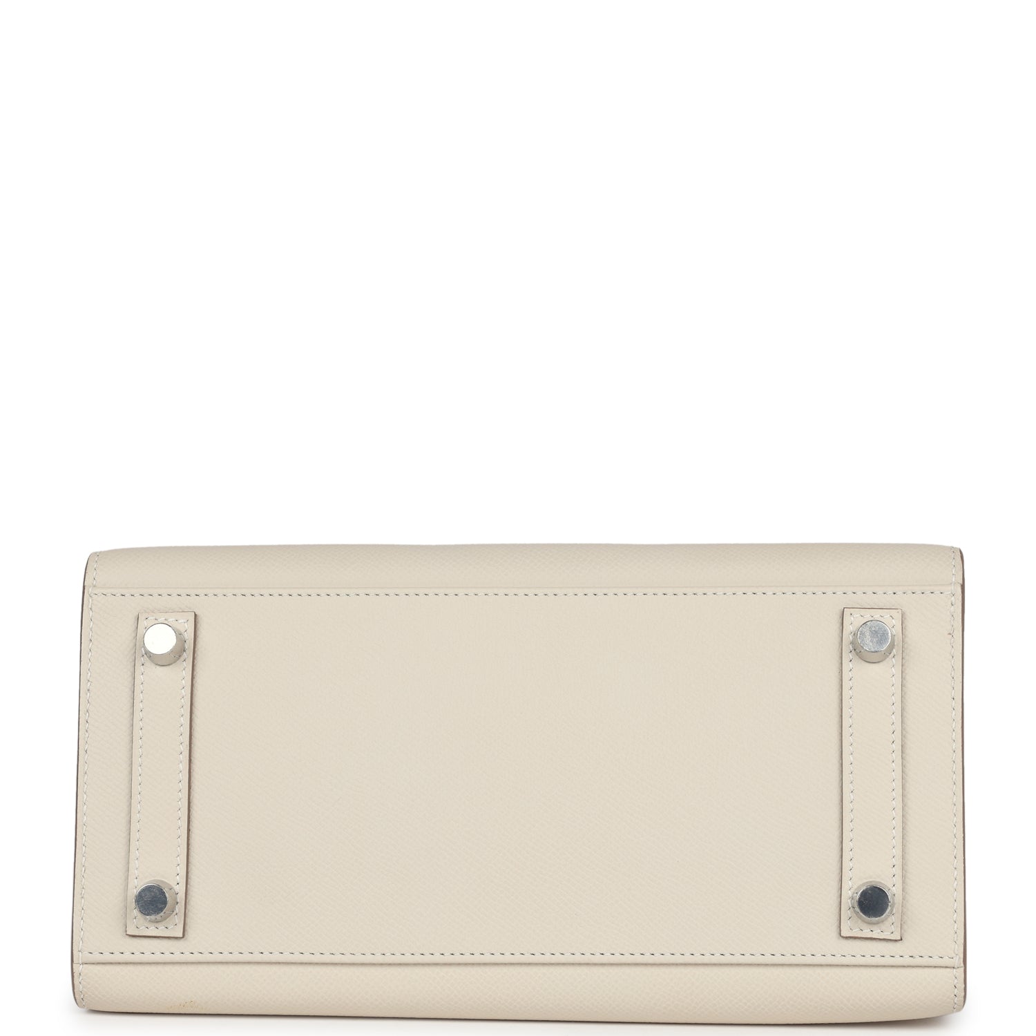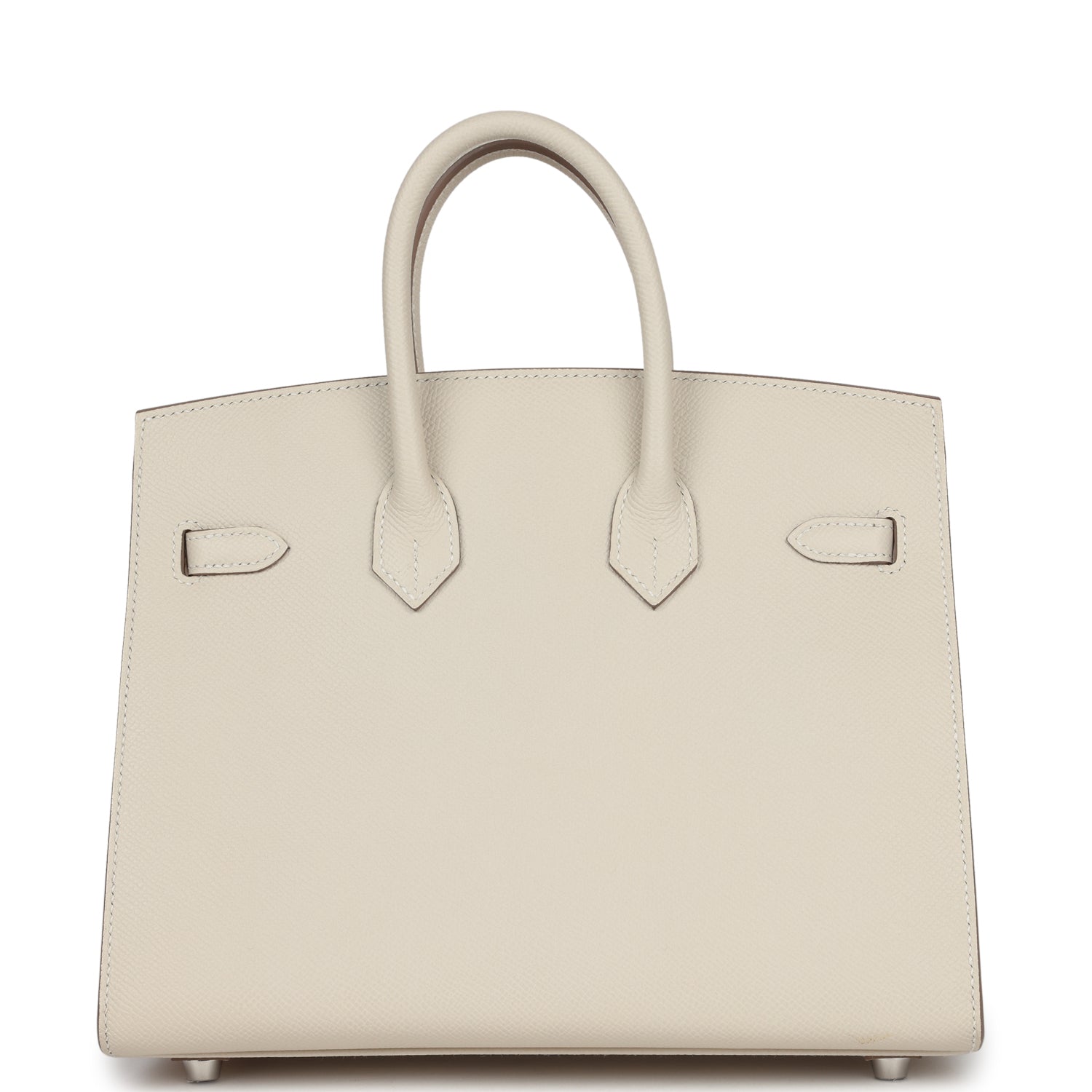 This Birkin is in Craie epsom leather with palladium hardware and has tonal stitching, front flap, two straps with center toggle closure, clochette with lock and two keys, and double rolled handles.