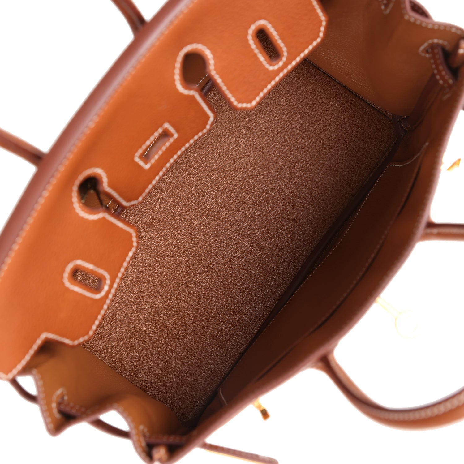 The interior is lined with Fauve chevre and has one zip pocket with an Hermes engraved zipper pull and an open pocket on the opposite side.
