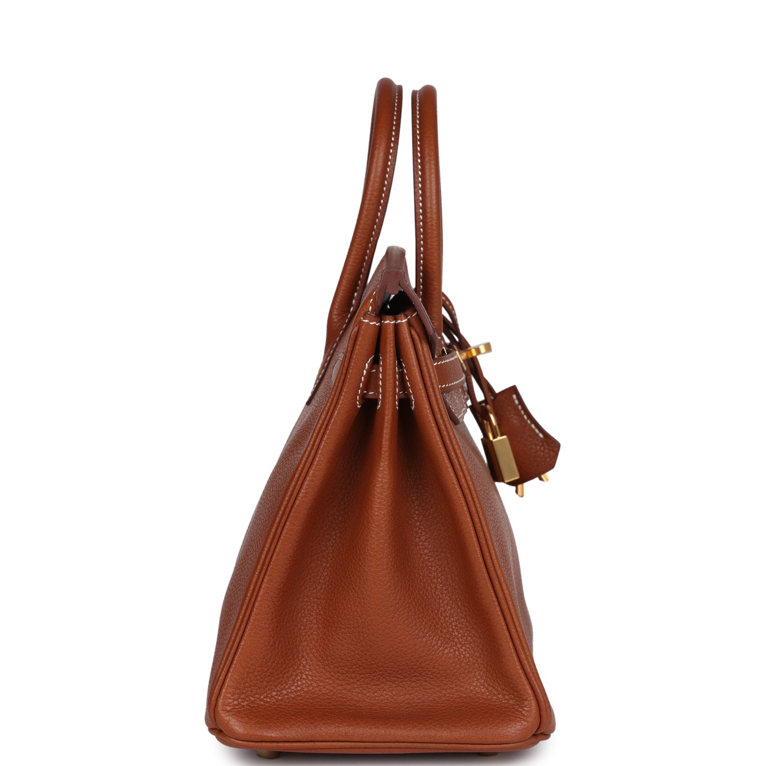 This Birkin is in Fauve Barenia Faubourg leather with gold hardware and features contrast stitching, front flap, two straps with center toggle closure, a clochette with lock and two keys and double rolled handles.