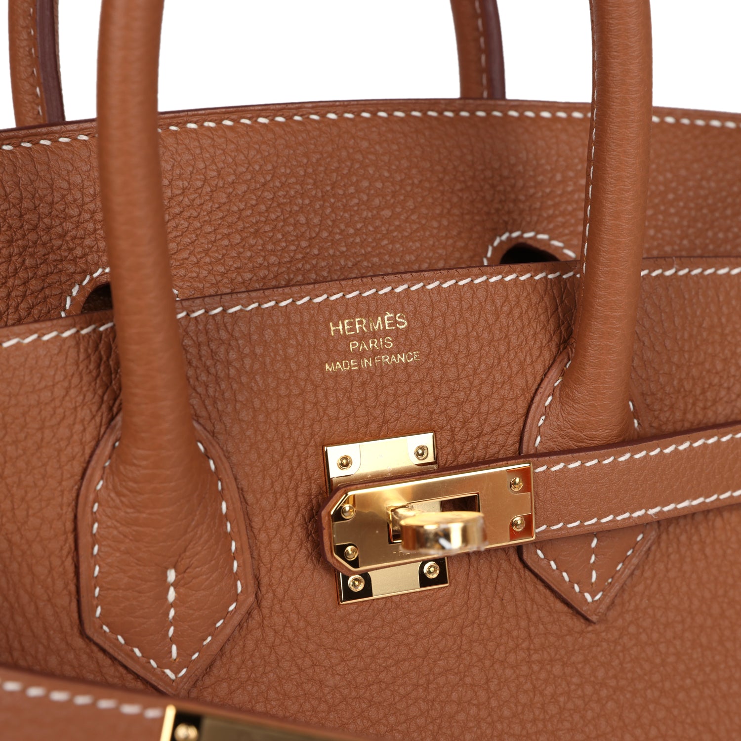 This Birkin is in Gold togo leather with gold hardware and features contrast stitching, front flap, two straps with center toggle closure, a clochette with lock and two keys and double rolled handles.