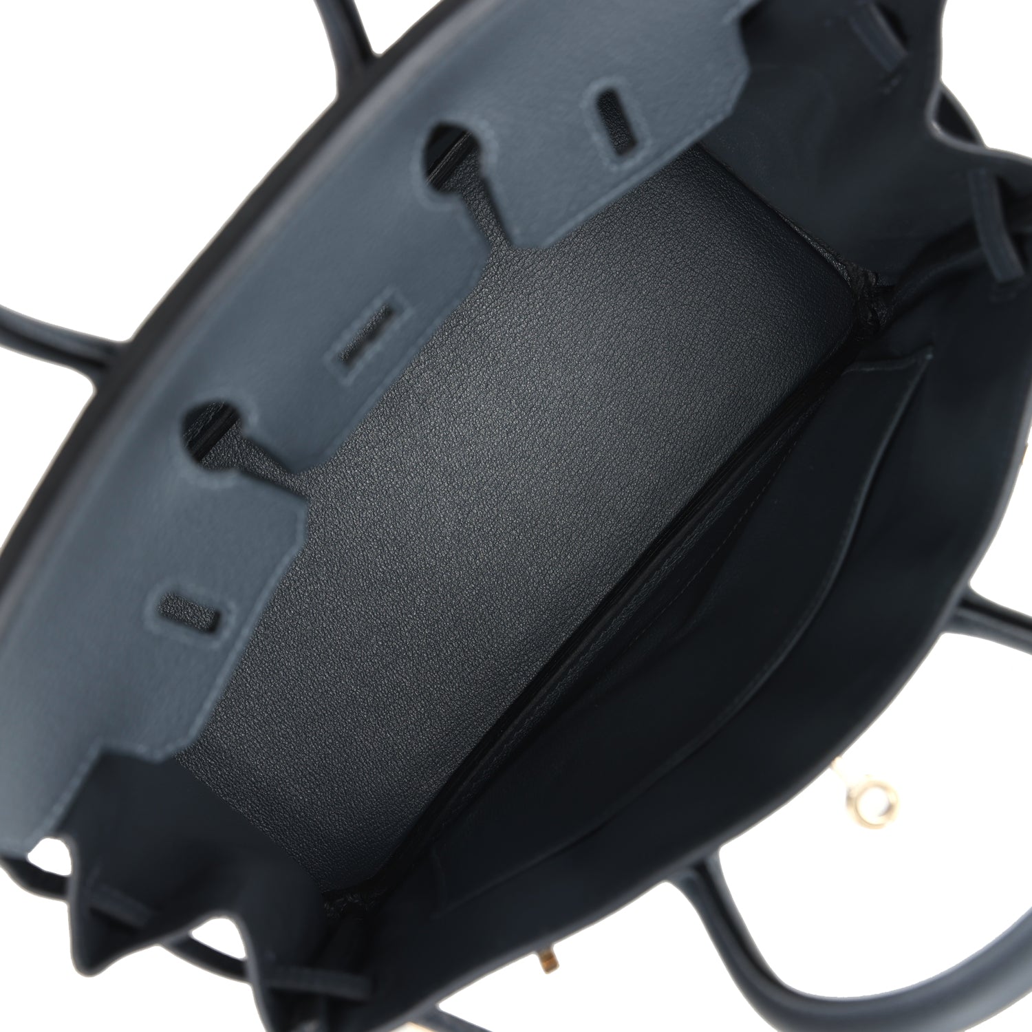 The interior is lined with Gris Misty chevre and has a zip pocket with an Hermes engraved zipper pull and an open pocket on the opposite side.