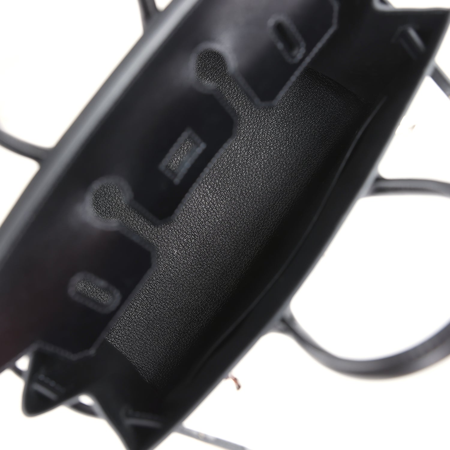 The interior is lined with Black chevre and has a zip pocket with an Hermes engraved zipper pull and an open pocket on the opposite side.