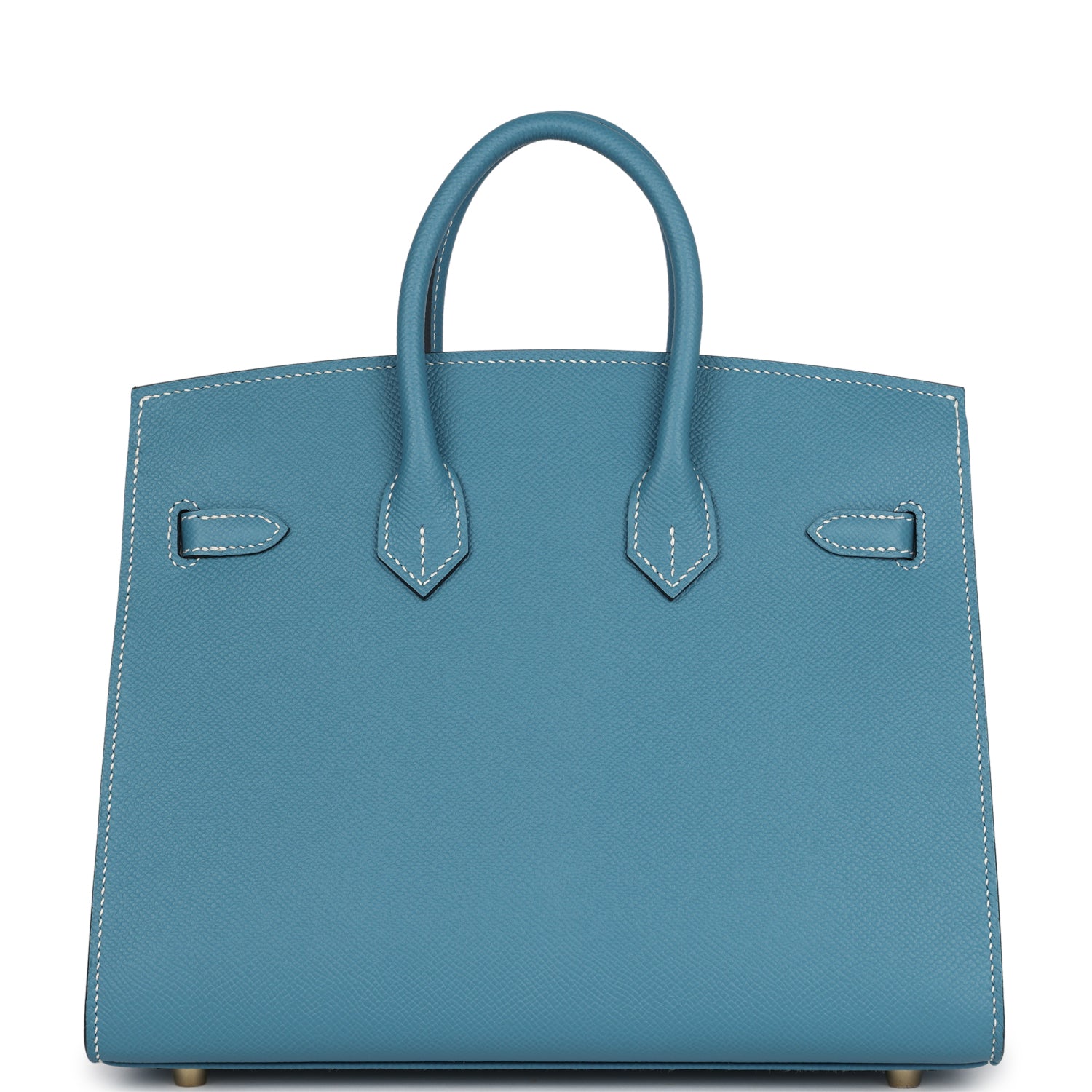 This Sellier Birkin is in Blue Jean epsom leather with gold hardware and has contrast stitching, a front flap, two straps with center toggle closure, clochette with lock and two keys, and double rolled handles.