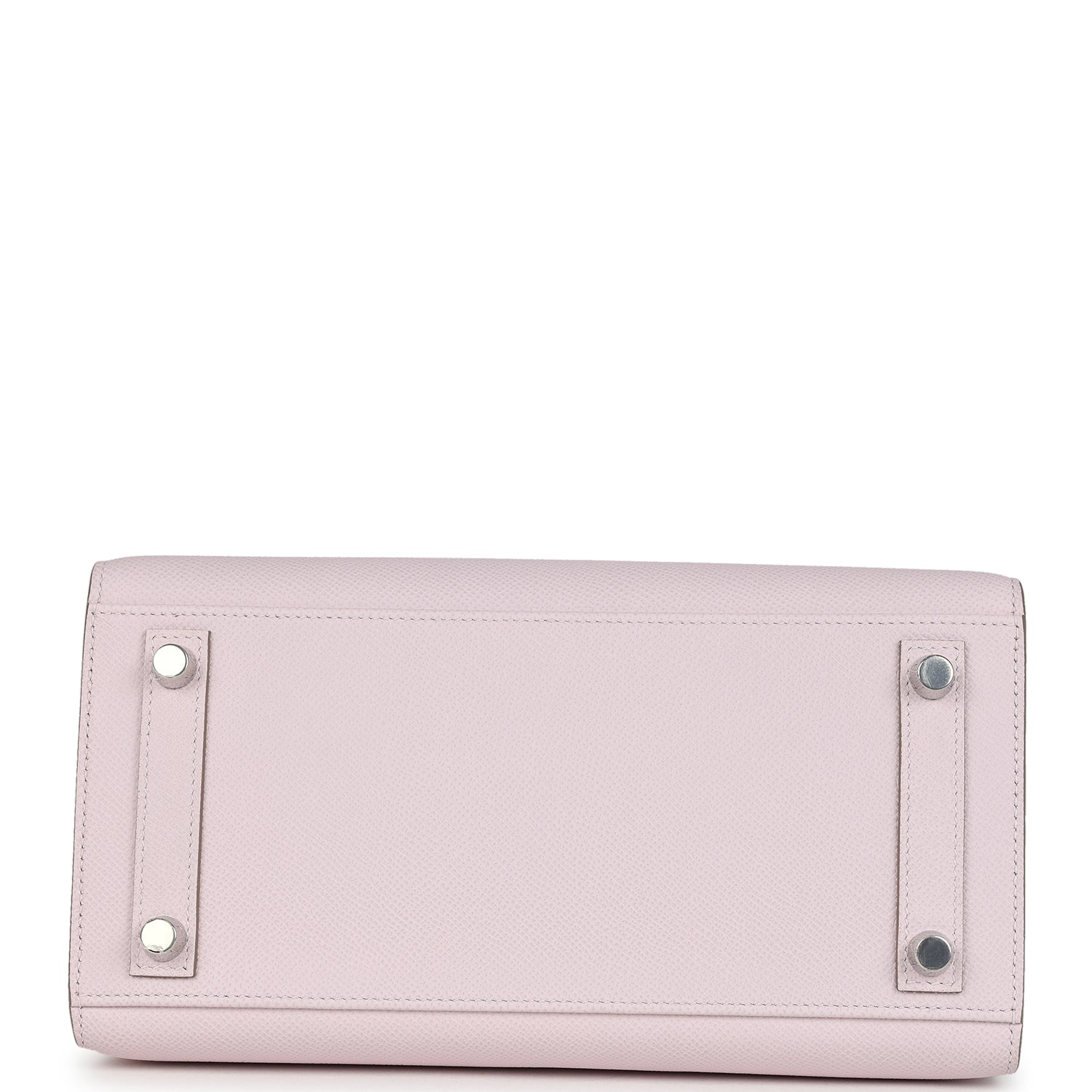 This Sellier Birkin is in Mauve Pale epsom leather with palladium hardware and has tonal stitching, front flap, two straps with center toggle closure, clochette with lock and two keys, and double rolled handles.