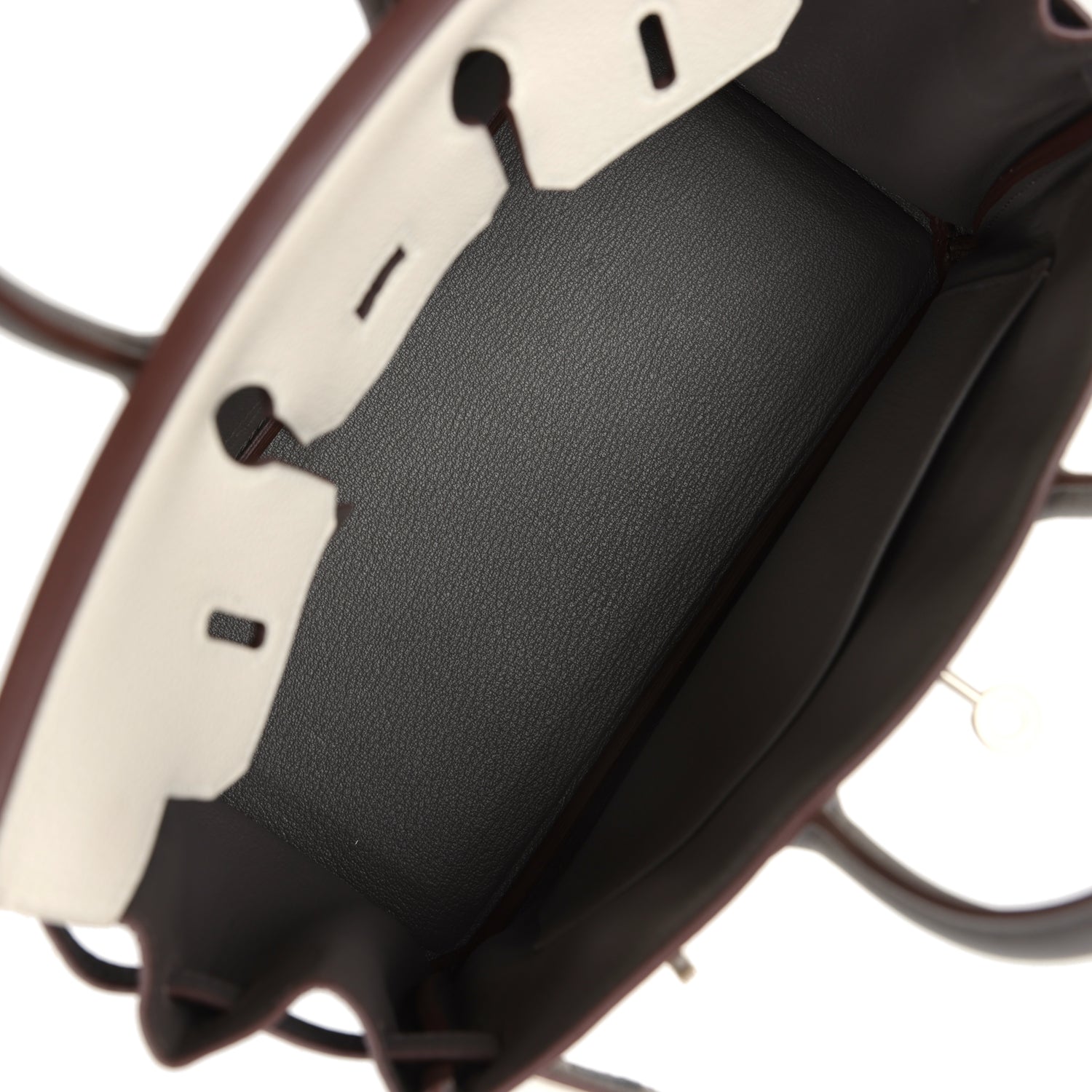 The interior is lined with Etain chevre and has one zip pocket with an Hermes engraved zipper pull and an open pocket on the opposite side.