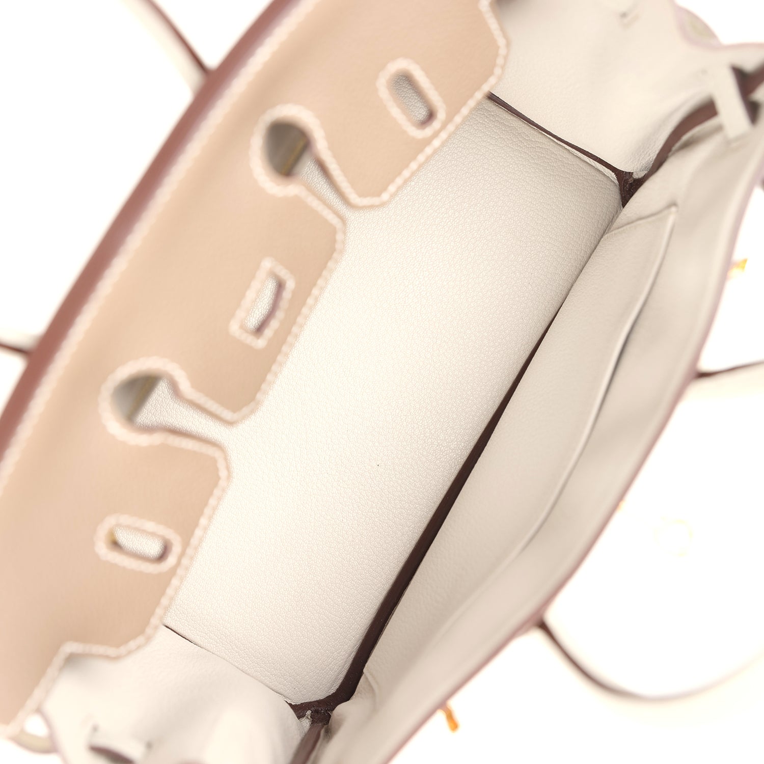 The interior is lined with Craie chevre and has one zip pocket with an Hermes engraved zipper pull and an open pocket on the opposite side.