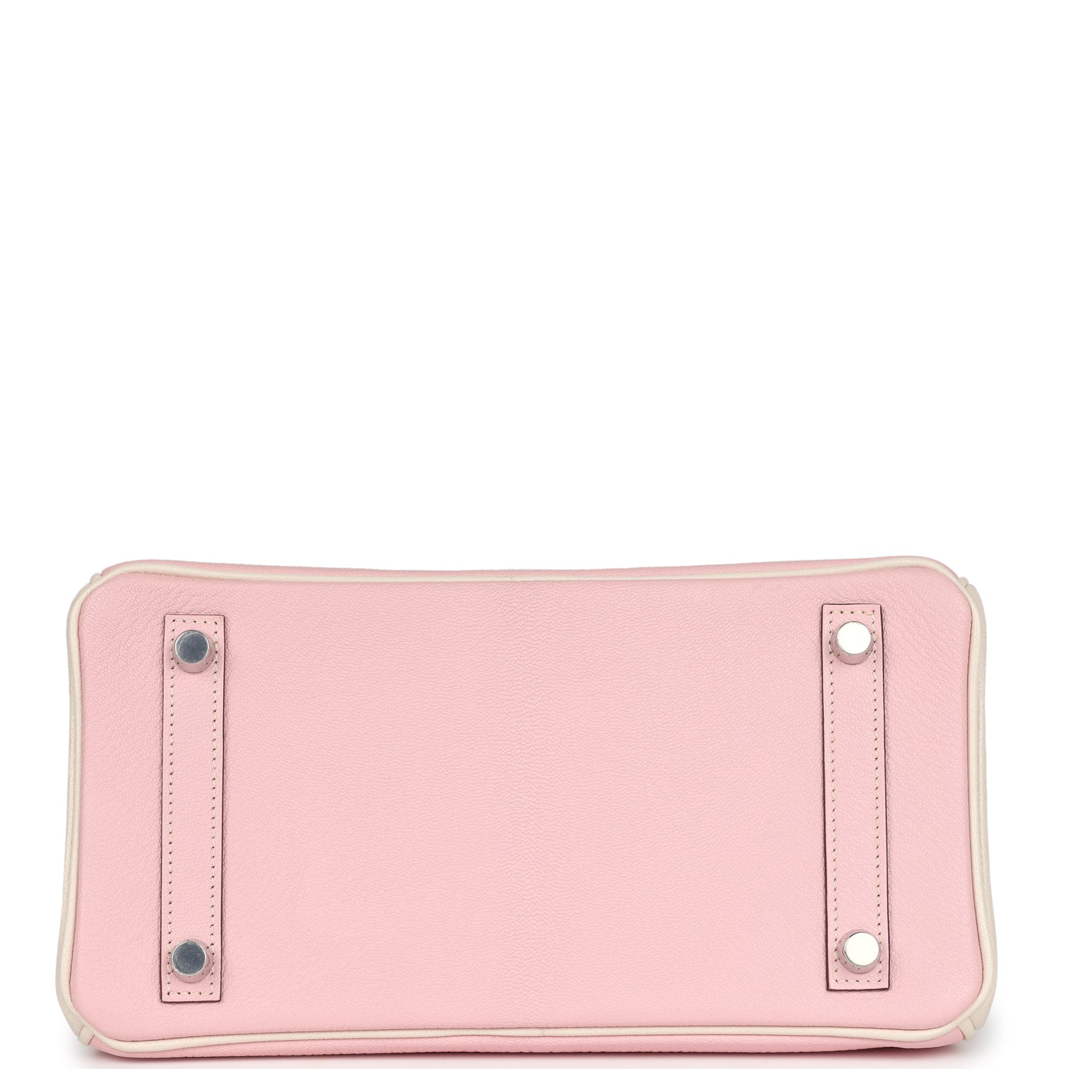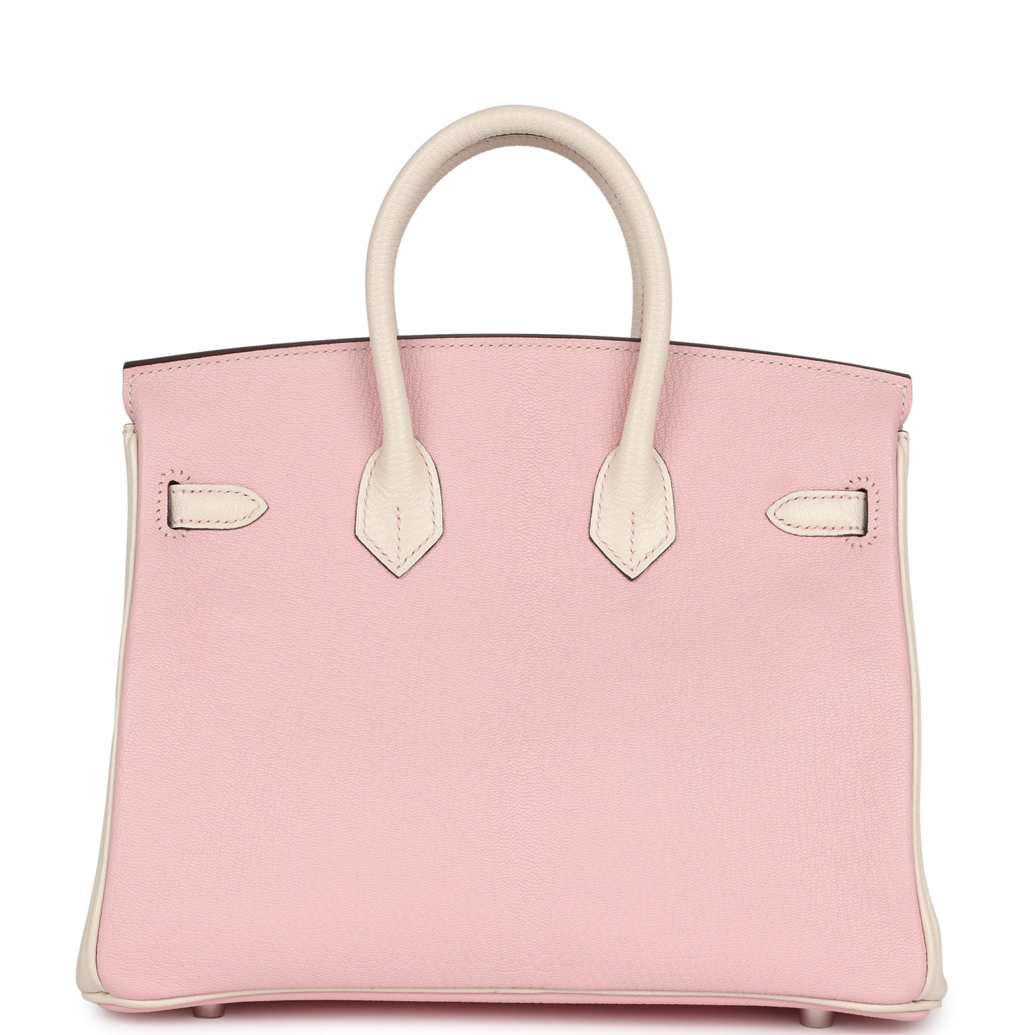 This Special Order Birkin is in Rose Sakura and Nata Chevre Mysore leather with brushed palladium hardware, has a mixture of tonal and contrast stitching, front flap, two straps with center toggle closure, clochette with lock and two keys, and double rolled handles.