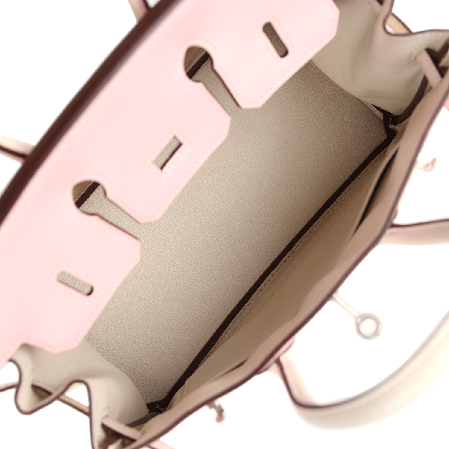 The interior is lined with Nata chevre leather and has one zip pocket with an Hermes engraved zipper pull and an open pocket on the opposite side.