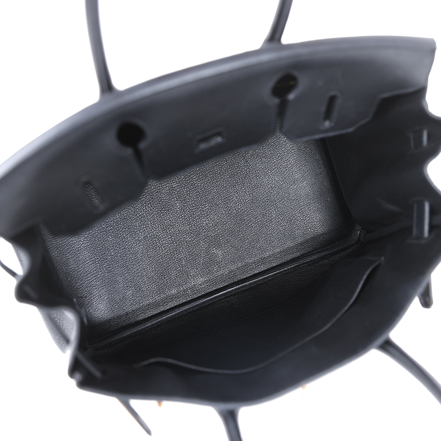 The interior is lined with Black chevre and has one zip pocket with an Hermes engraved zipper pull and an open pocket on the opposite side.