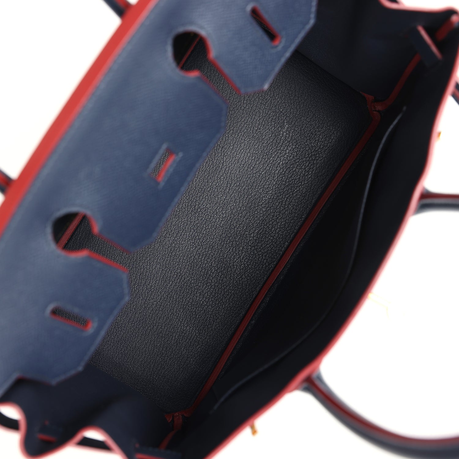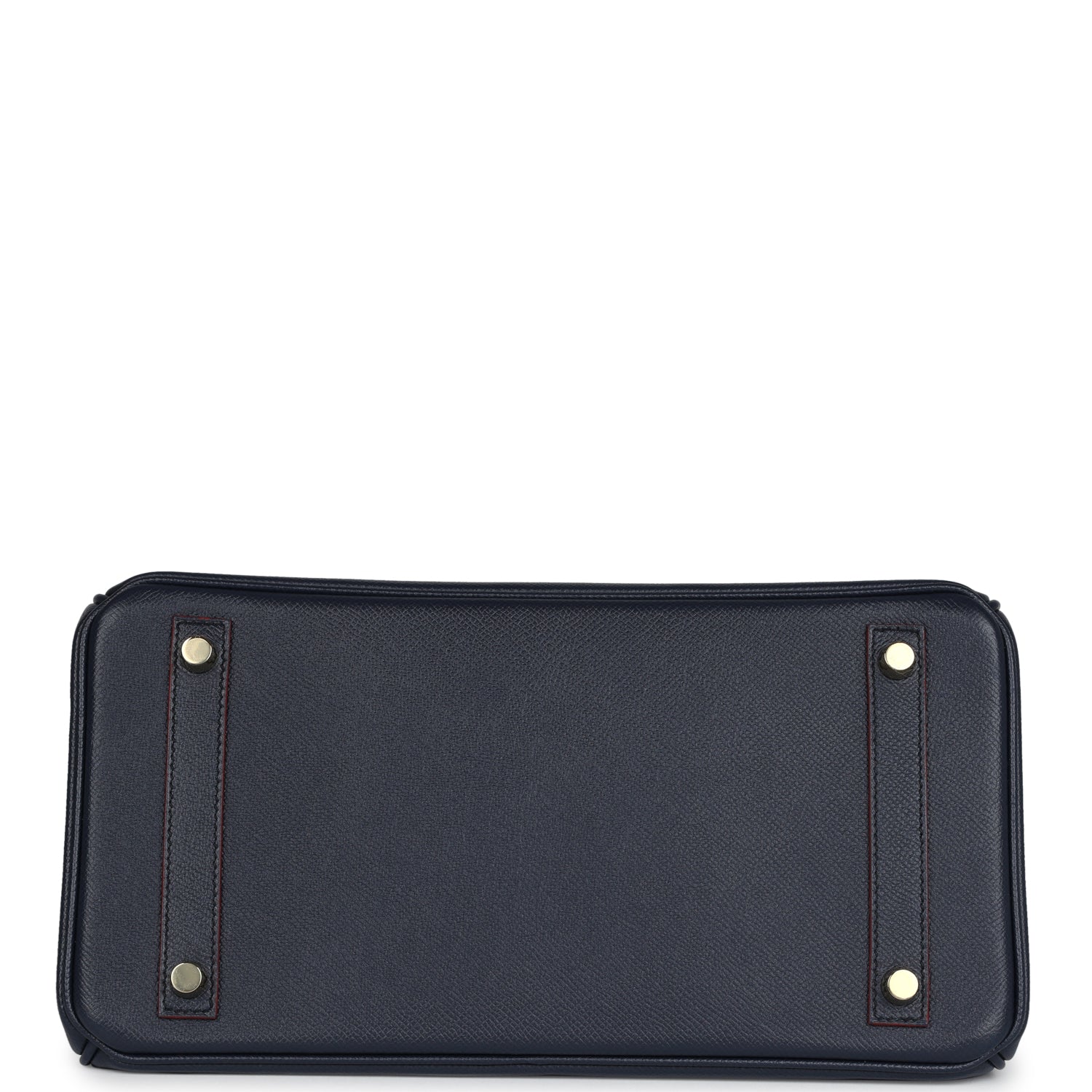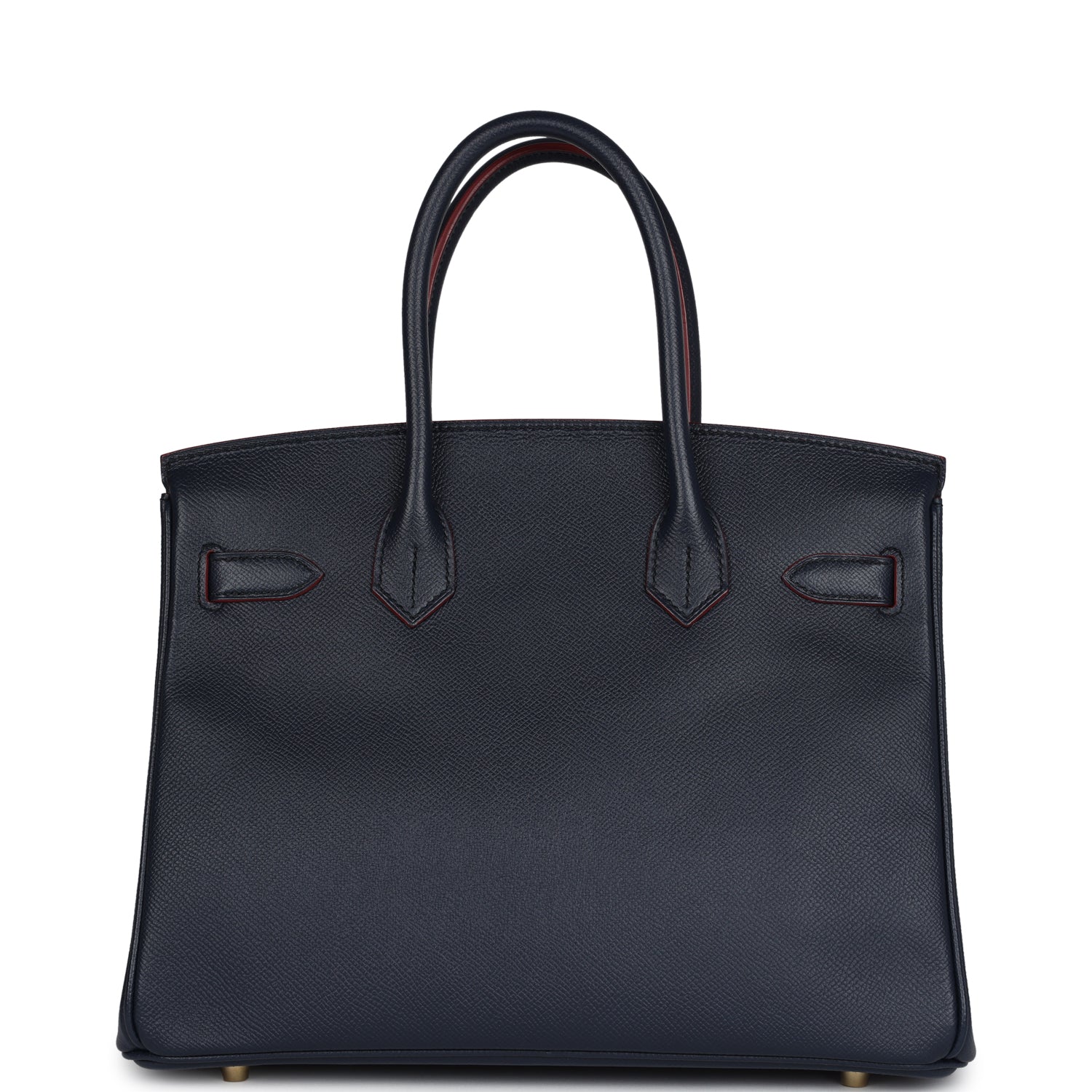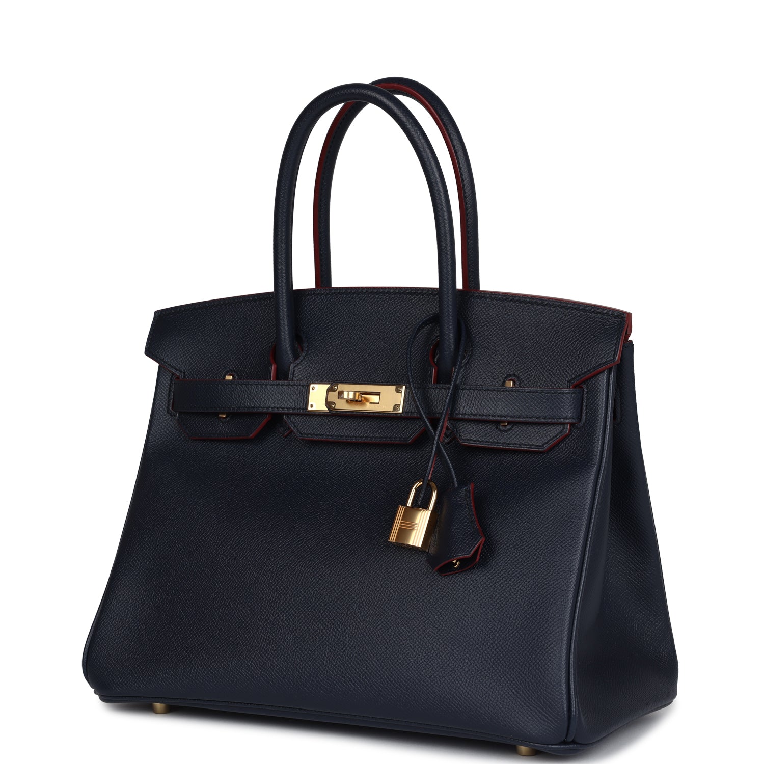 This limited edition Hermes Contour Birkin is in Bleu Indigo epsom with Contour Rouge H edge paint and gold hardware, tonal stitching, front flap with two straps, front toggle closure, clochette with lock and two keys, double rolled handles.