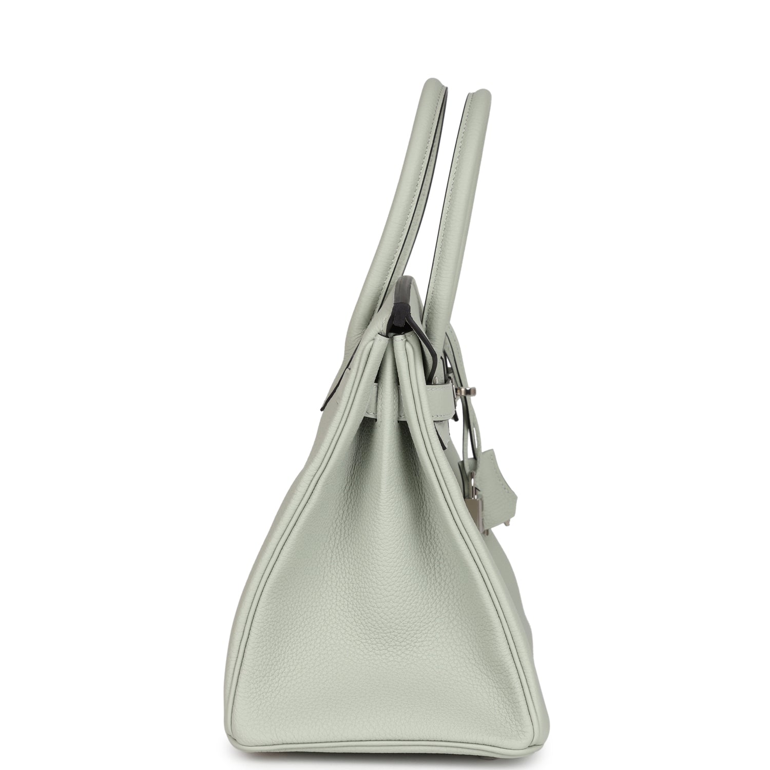 This Birkin is in Gris Neve togo leather with palladium hardware and features tonal stitching, front flap, two straps with center toggle closure, clochette with lock and two keys, and double rolled handles.