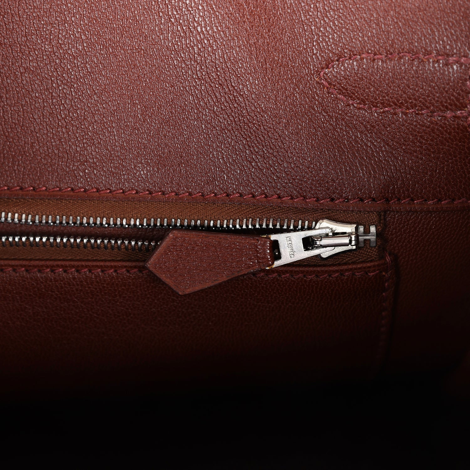 The interior is lined with Miel chevre and has a zip pocket with an Hermes engraved zipper pull and an open pocket on the opposite side.