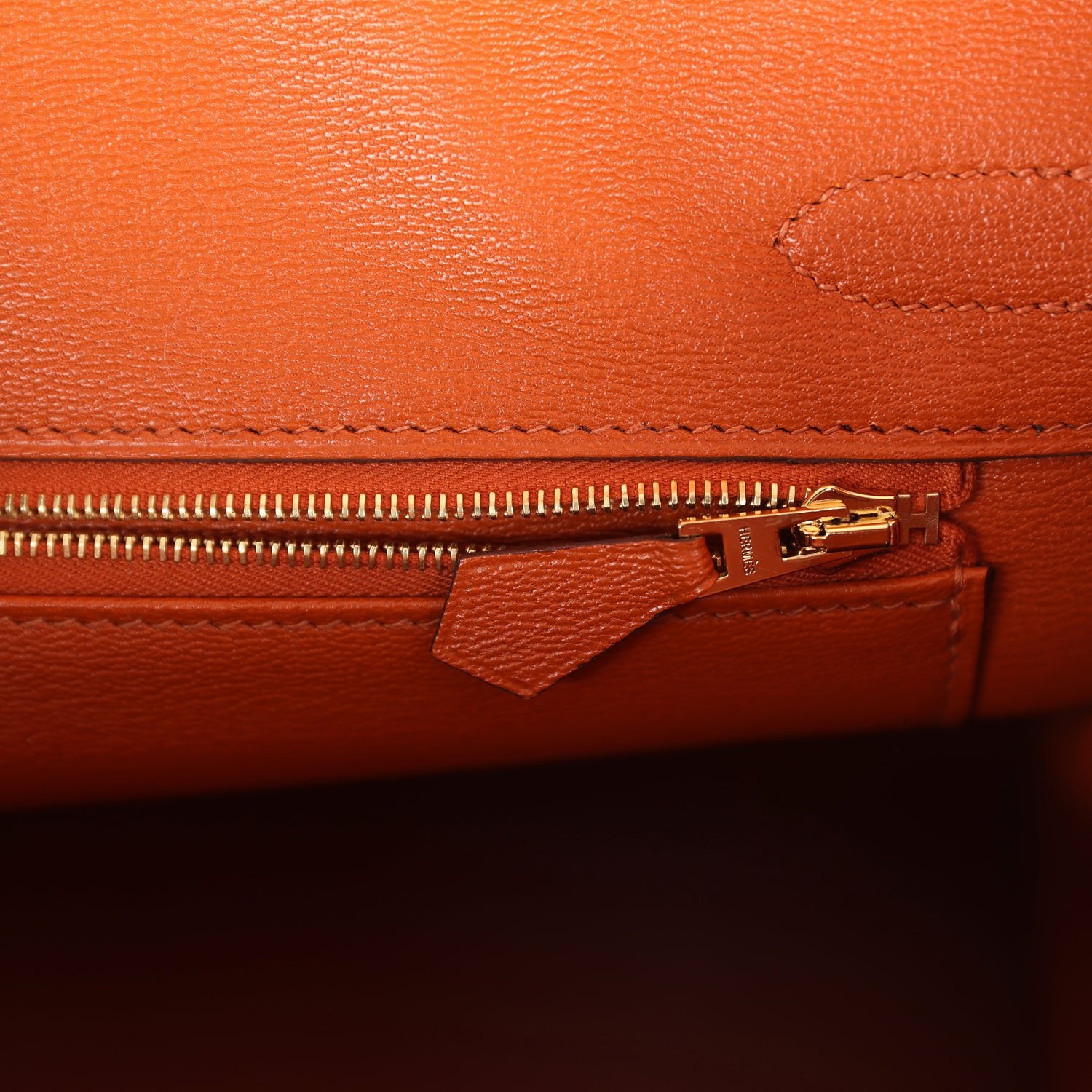 The interior is lined in Pain D' Epice chevre leather and has a zip pocket with Hermes engraved pull; pocket on opposite side.