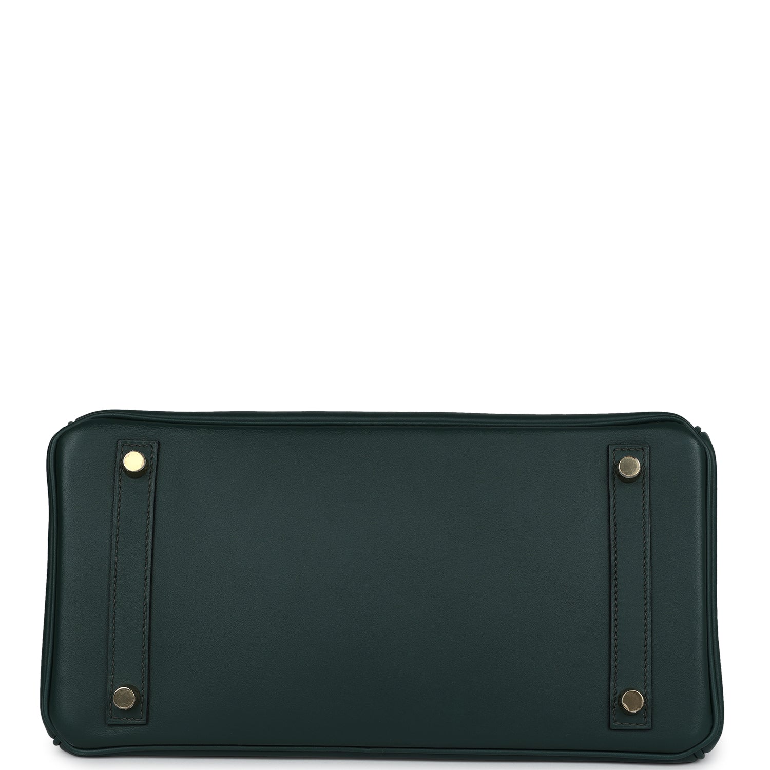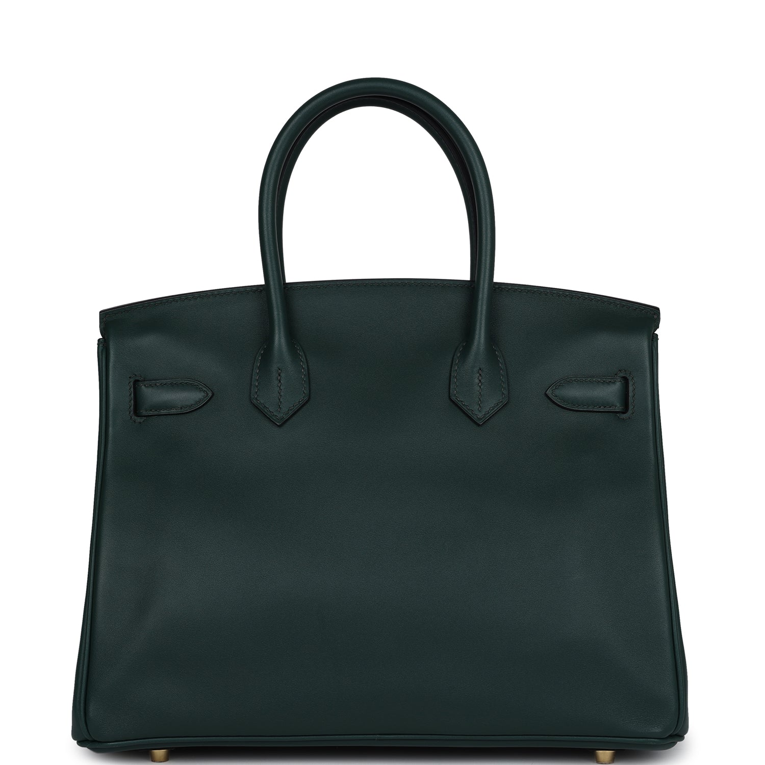 This Birkin is in Vert Tropical Veau Jonathan leather with gold hardware and features tonal stitching, front flap, two straps with center toggle closure, clochette with lock and two keys, and double rolled handles.