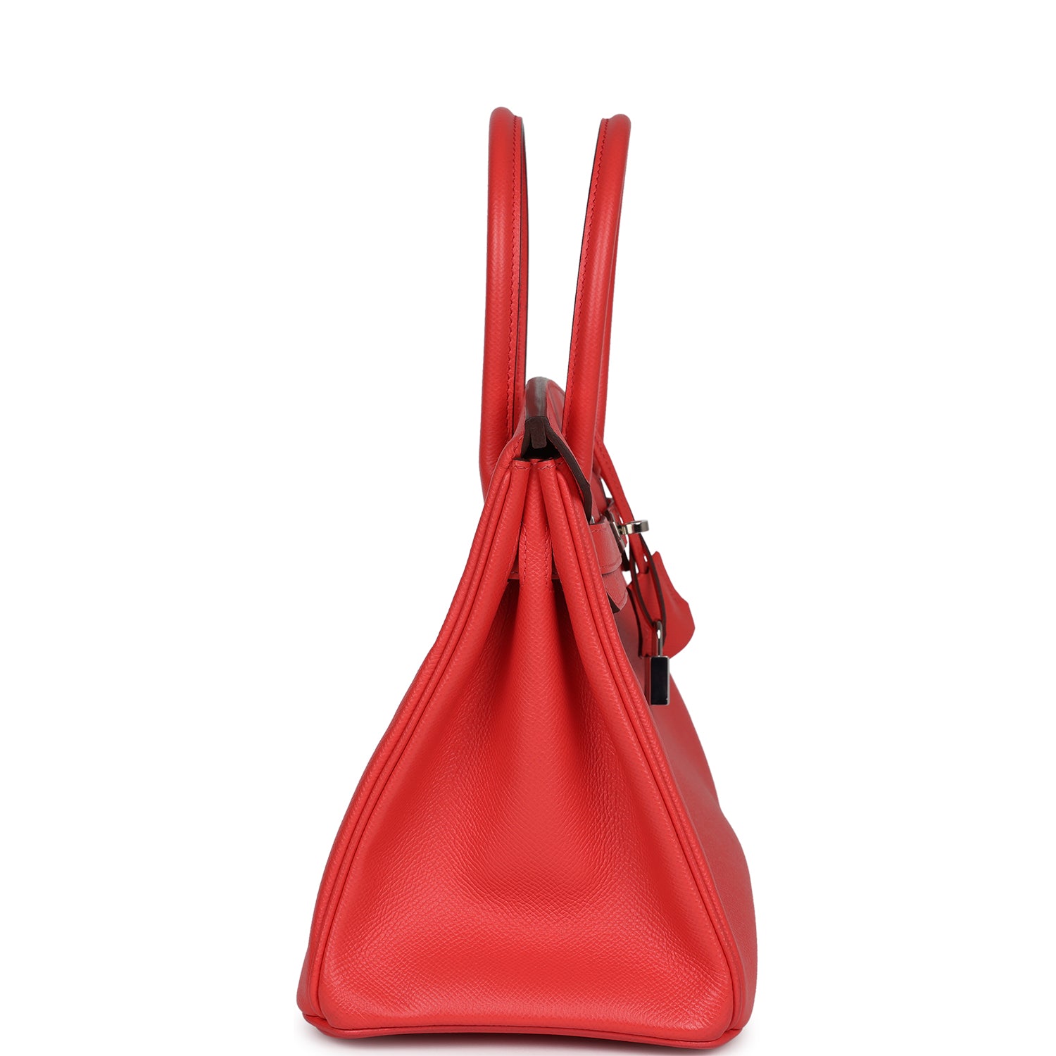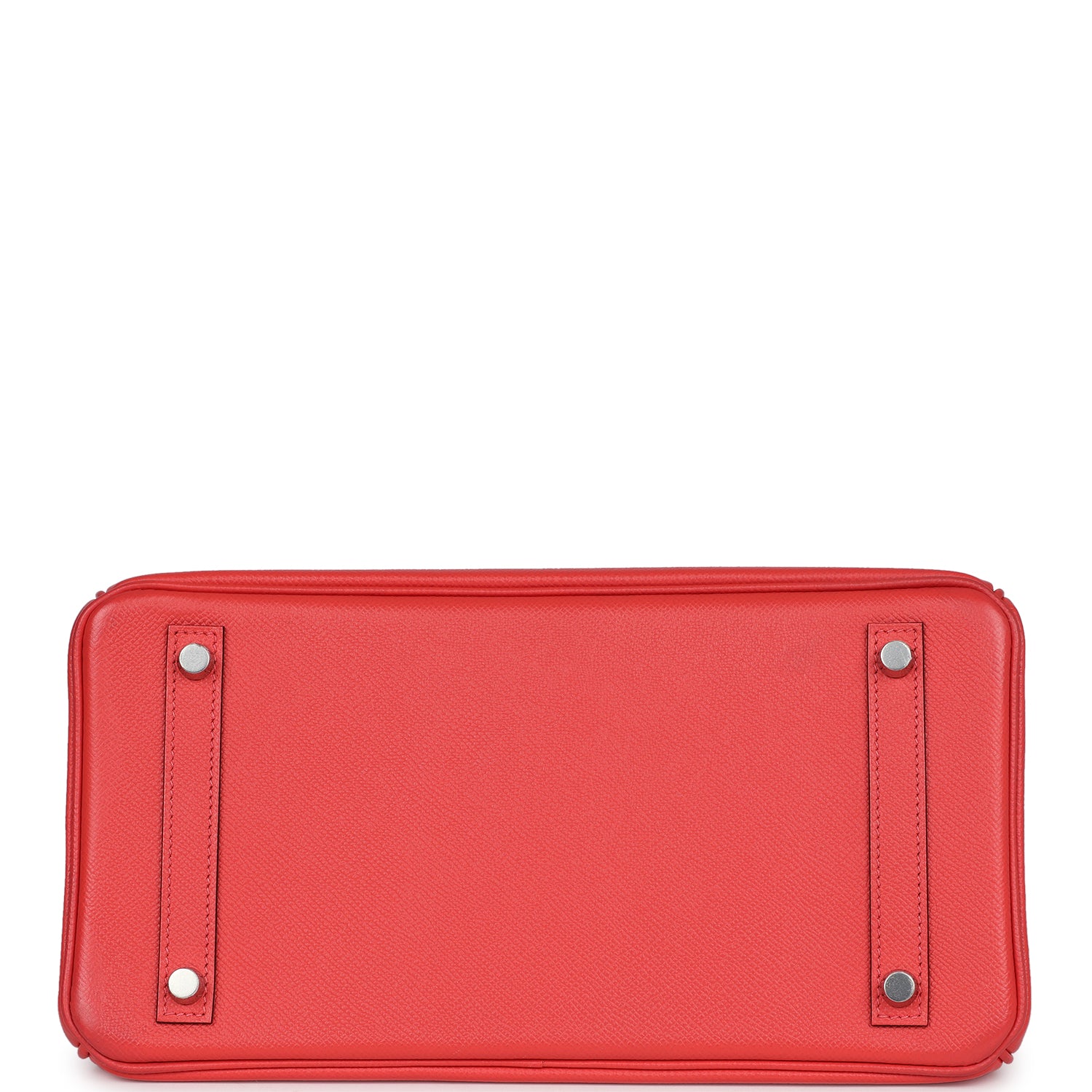 This Birkin is in Rose Jaipur epsom leather with palladium hardware and has tonal stitching, front flap, two straps with center toggle closure, clochette with lock and two keys, and double rolled handles.