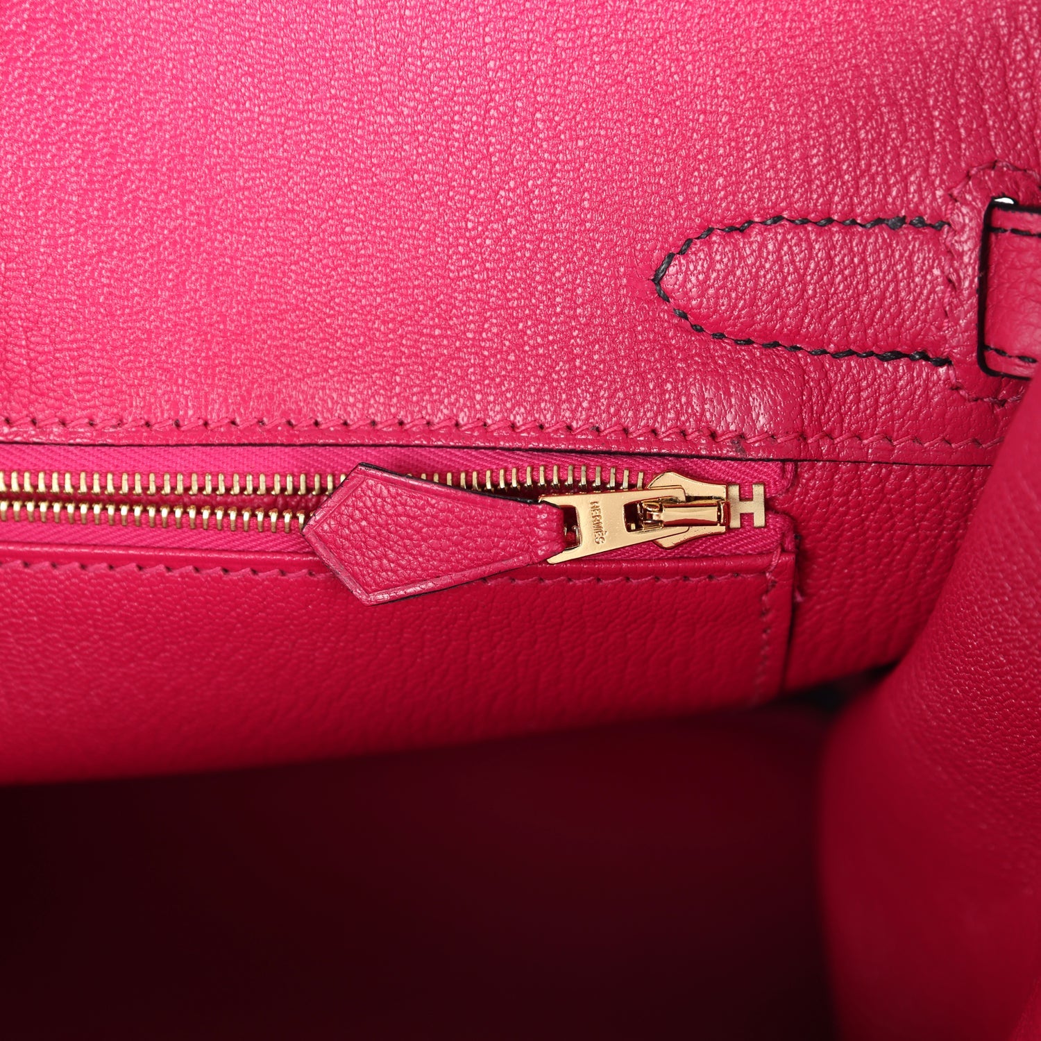 The interior is lined with Rose Mexico leather and has one zip pocket with an Hermes engraved zipper pull and an open pocket on the opposite side