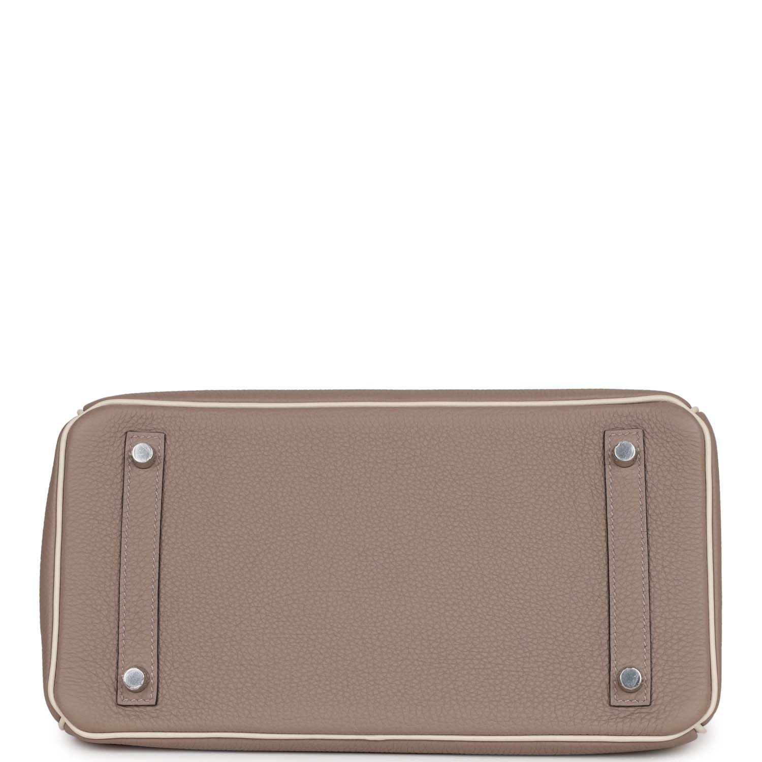 This Special Order Birkin is in Gris Tourterelle and Craie togo leather with palladium hardware and has tonal stitching,front flap, two straps with center toggle closure, clochette with lock and two keys, and double rolled handles.