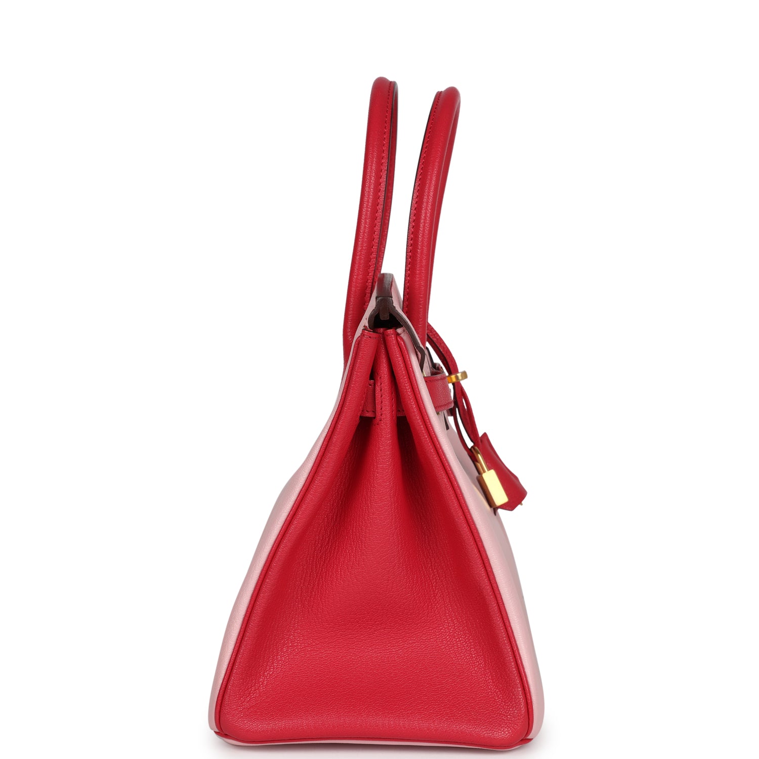 This Special Order Birkin is in Rose Sakura and Rose Extreme Chevre Mysore leather with gold hardware, featuring tonal stitching, front flap, two straps with center toggle closure, clochette with lock and two keys, and double rolled handles.