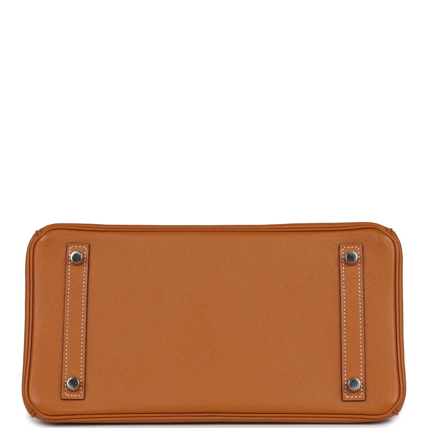 This Birkin is in Toffee epsom leather with palladium hardware and has contrast stitching, two straps with front toggle closure, clochette with lock and two keys and double rolled handles.