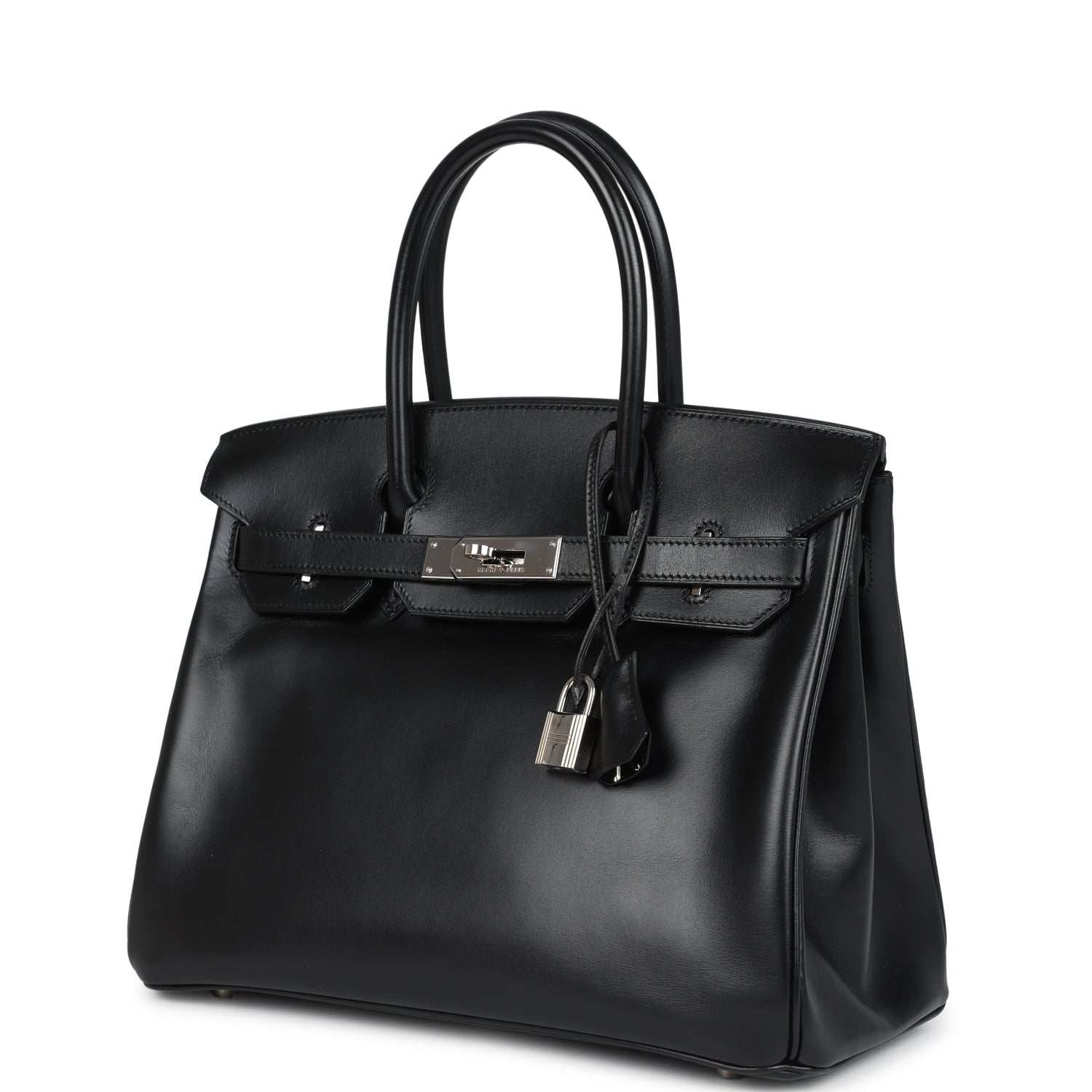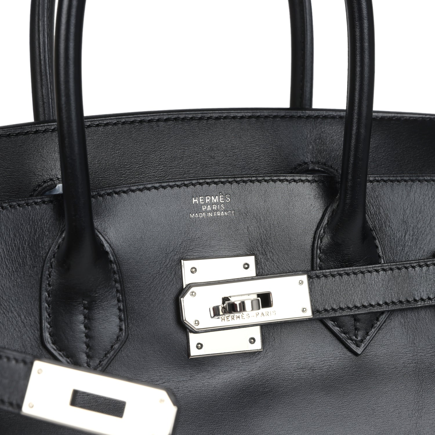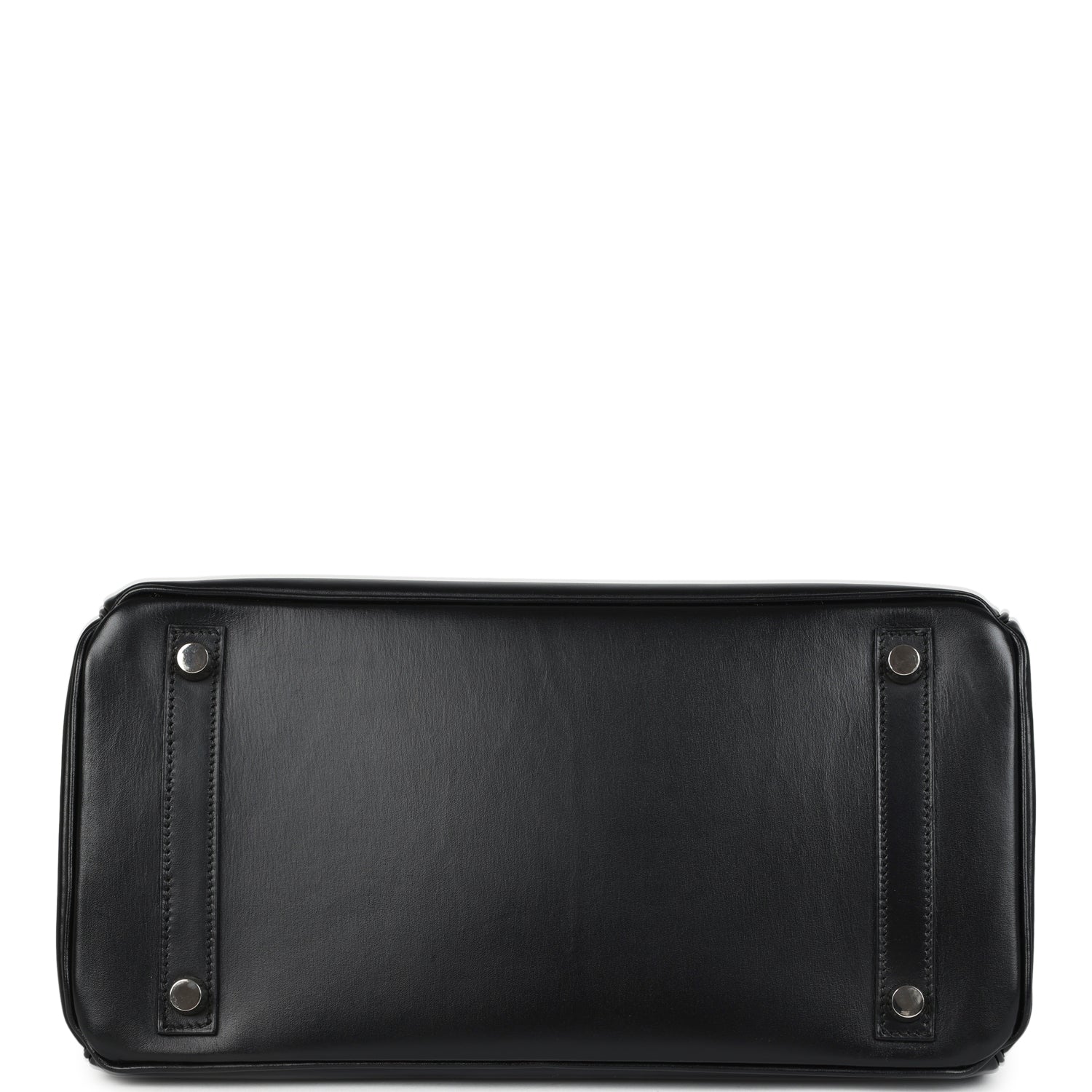 This Vintage Birkin is in Black box calfskin leather with palladium hardware and has tonal stitching, front flap, two straps with center toggle closure, clochette with lock and two keys, and double rolled handles.