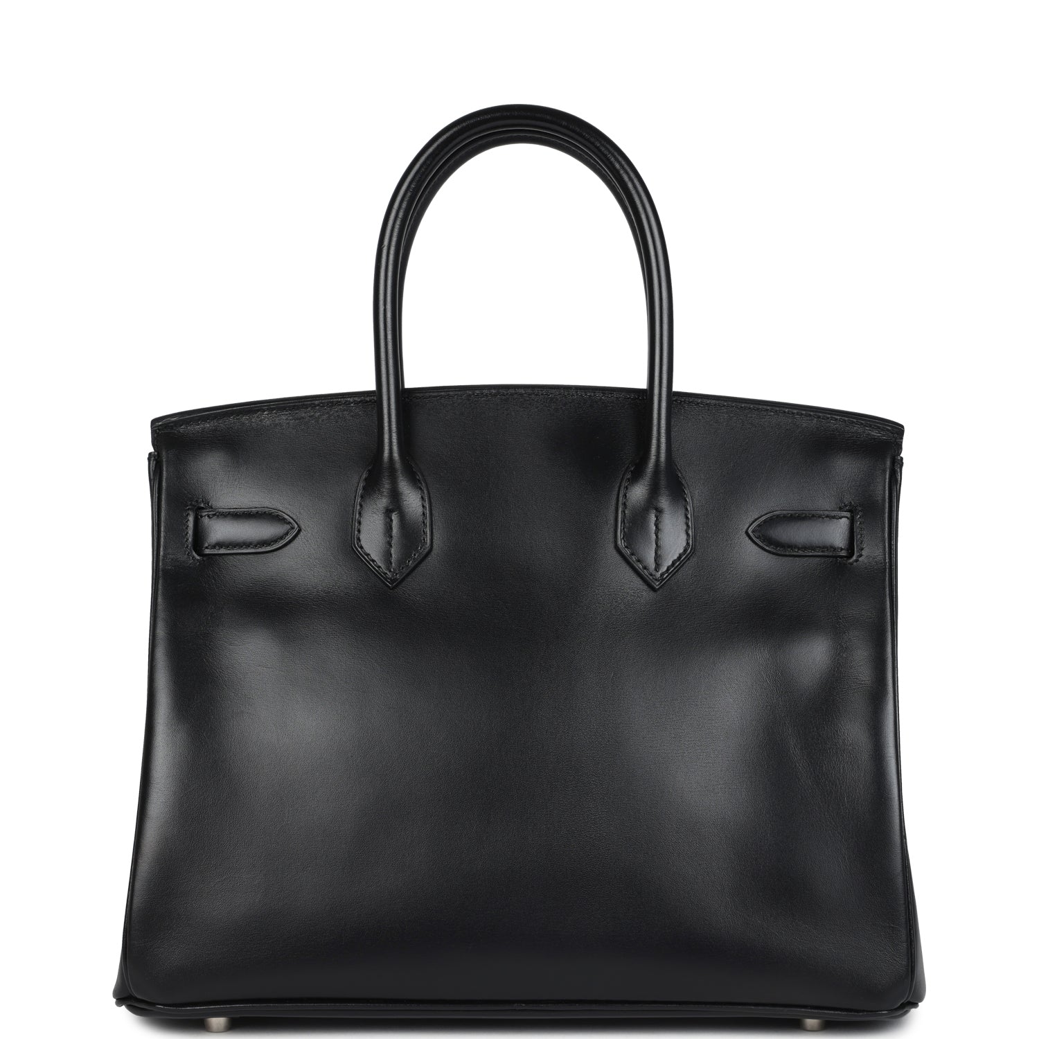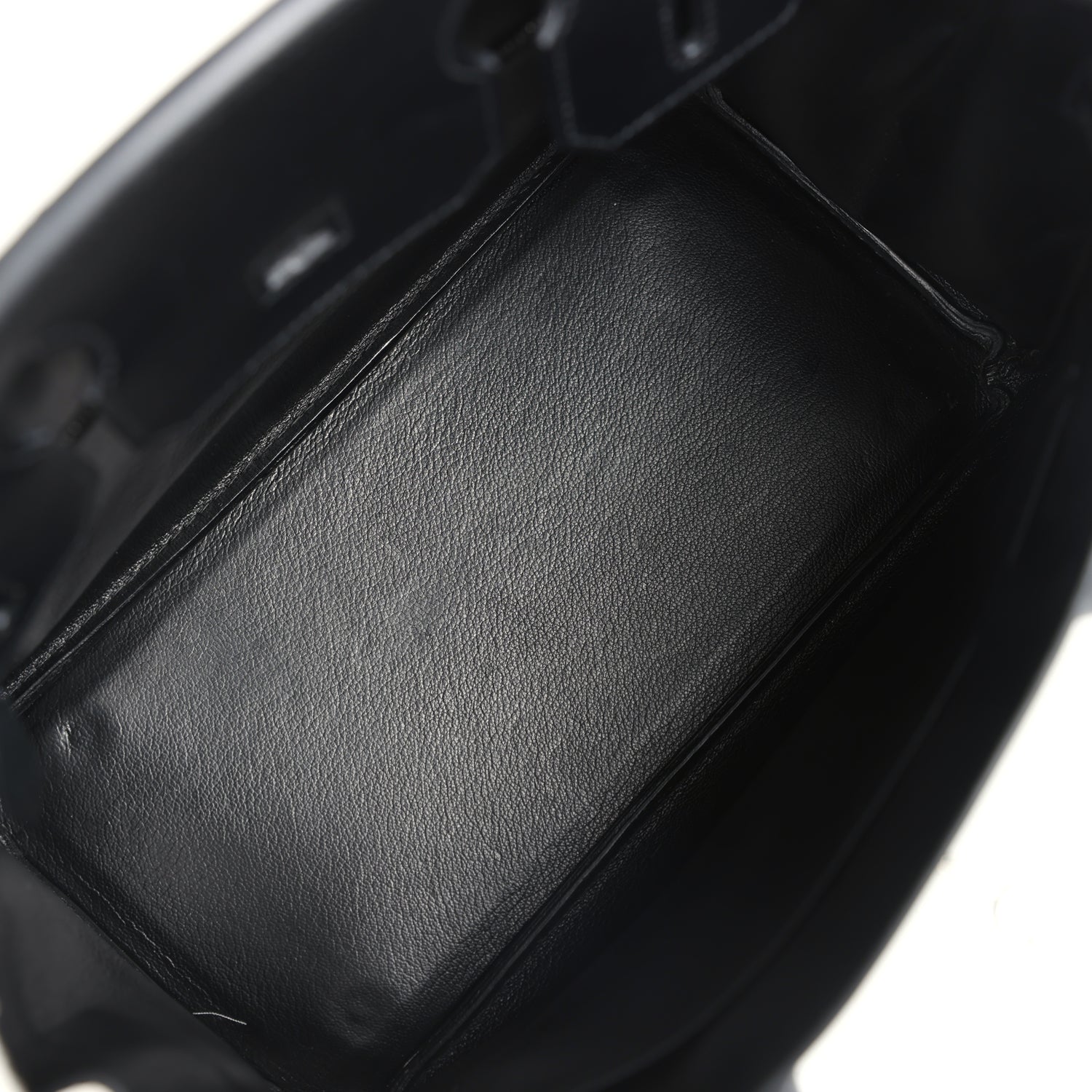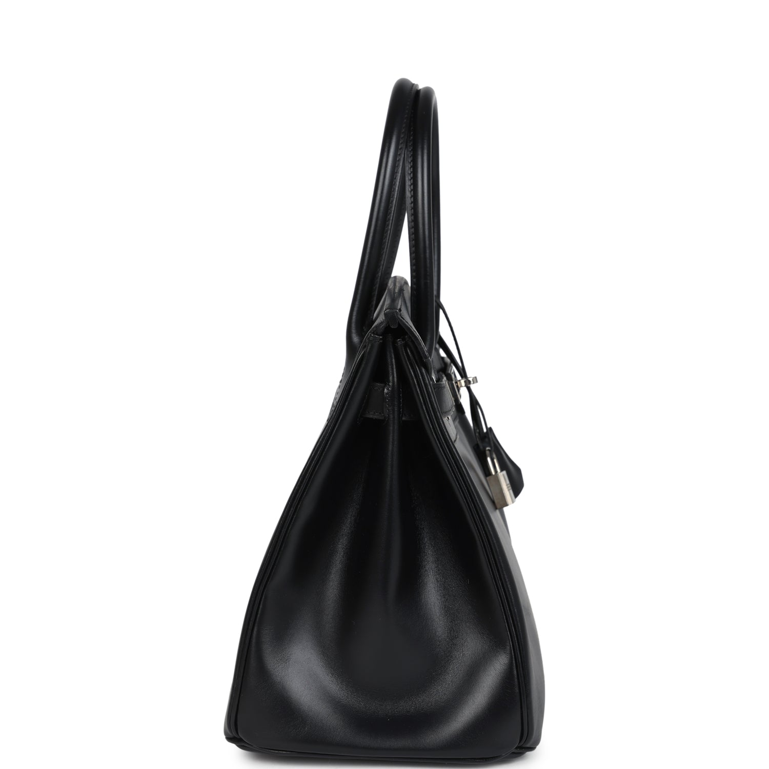 This Vintage Birkin is in Black box calfskin leather with palladium hardware and has tonal stitching, front flap, two straps with center toggle closure, clochette with lock and two keys, and double rolled handles.