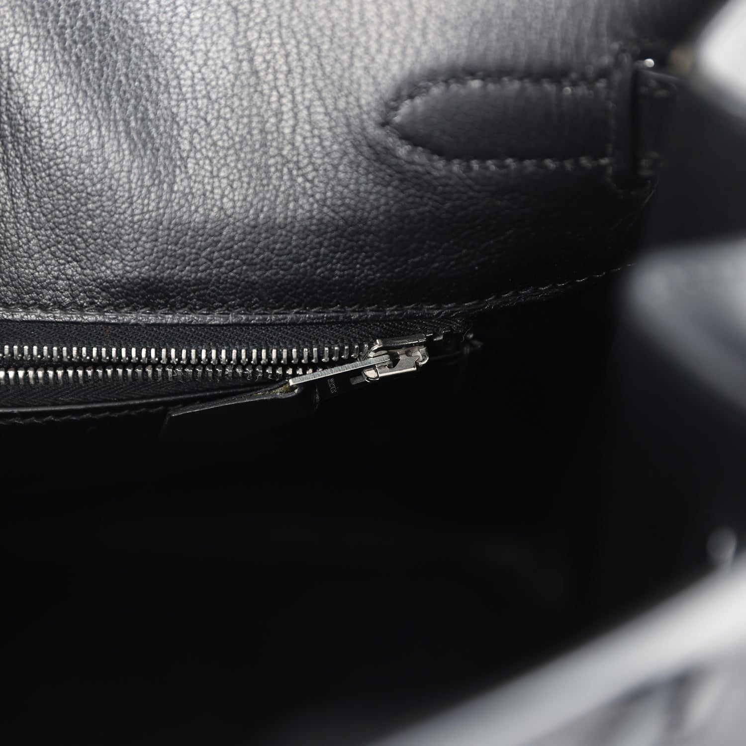 The interior is lined with Black chevre and has one zip pocket with an Hermes engraved zipper pull and an open pocket on the opposite side.