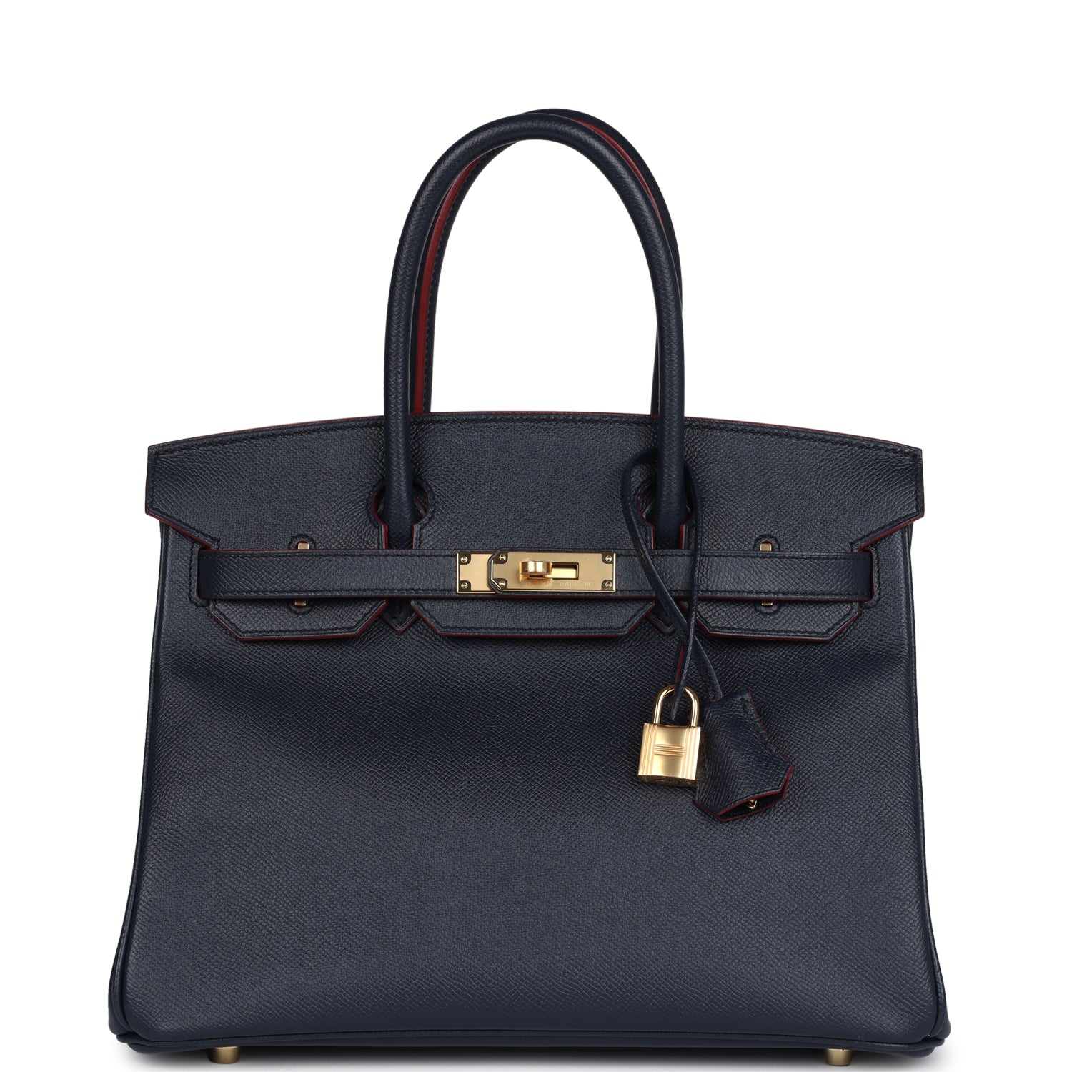 Hermes Birkin 30 Bleu Indigo and Rouge H Contour Epsom Gold Hardware