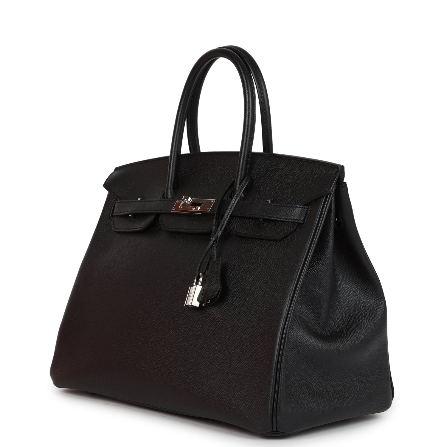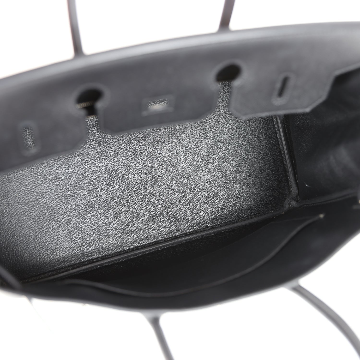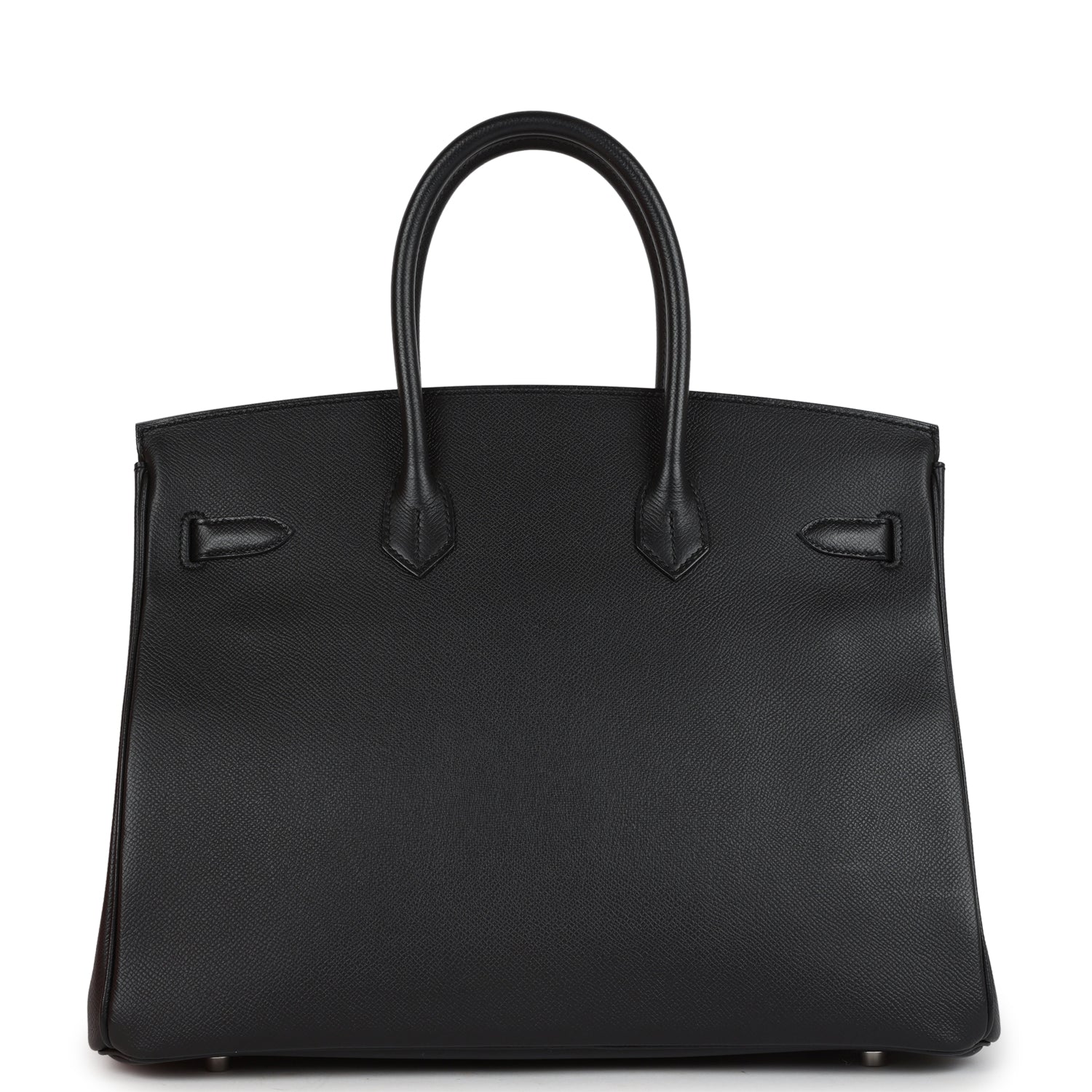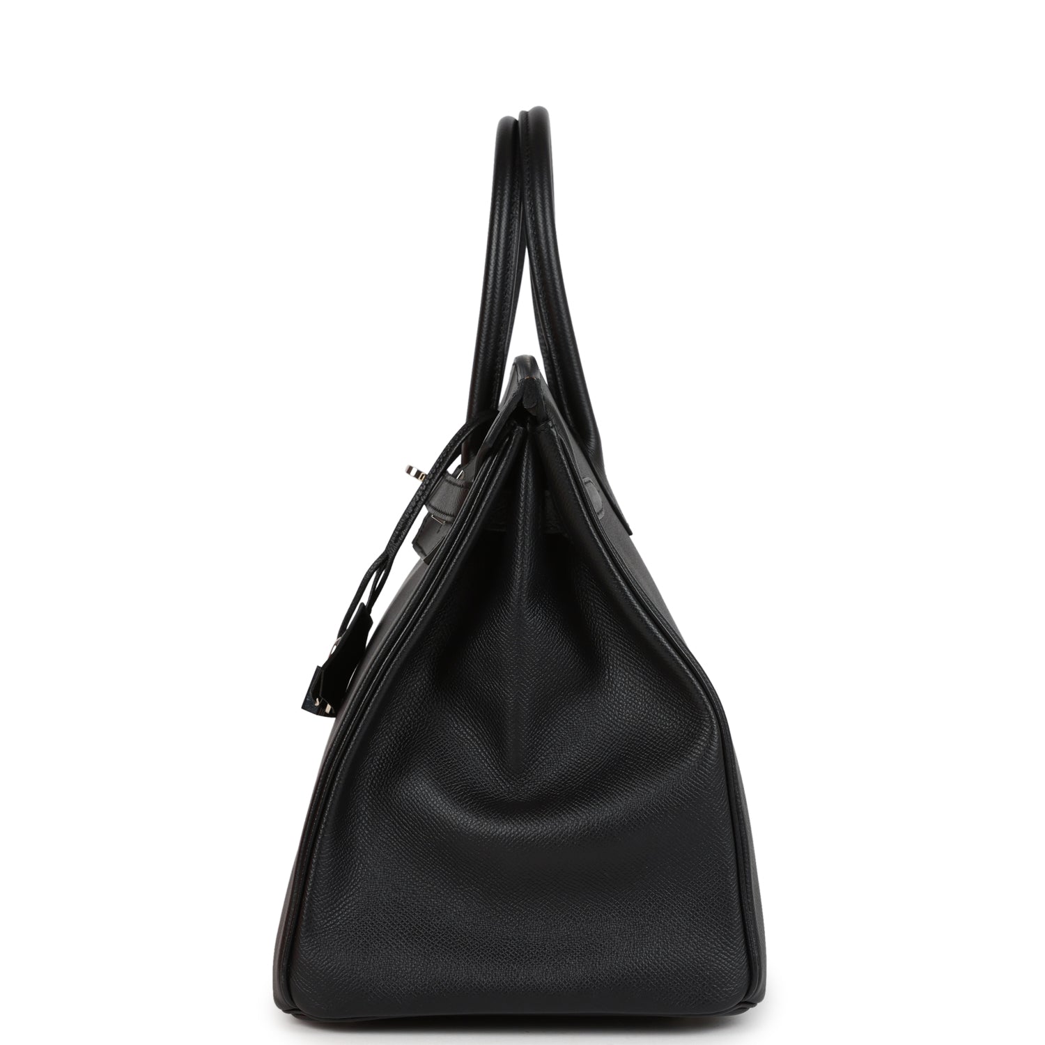 This Birkin is in Black epsom leather with palladium hardware and has tonal stitching,front flap, two straps with center toggle closure, clochette with lock and two keys, and double rolled handles.