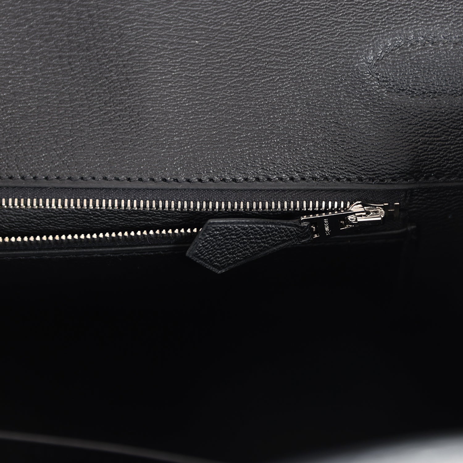 The interior is lined with Black chevre and has one zip pocket with an Hermès engraved zipper pull and an open pocket on the opposite side.