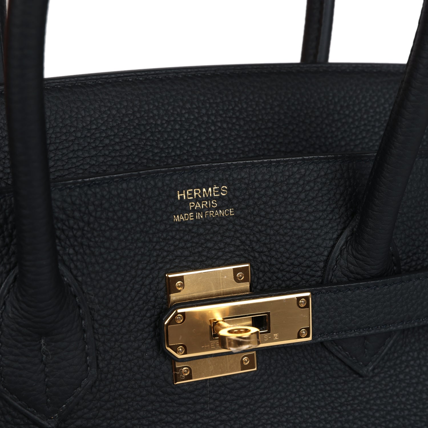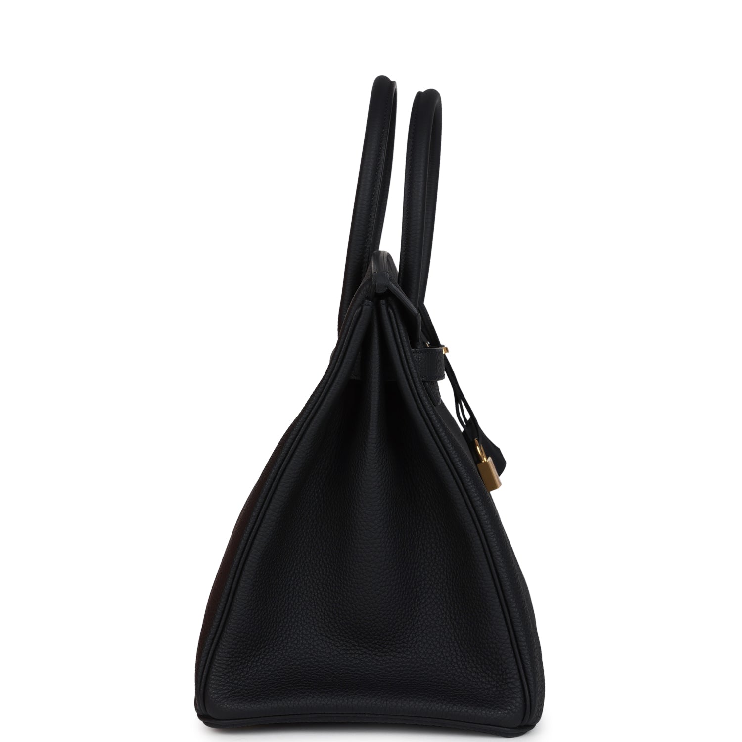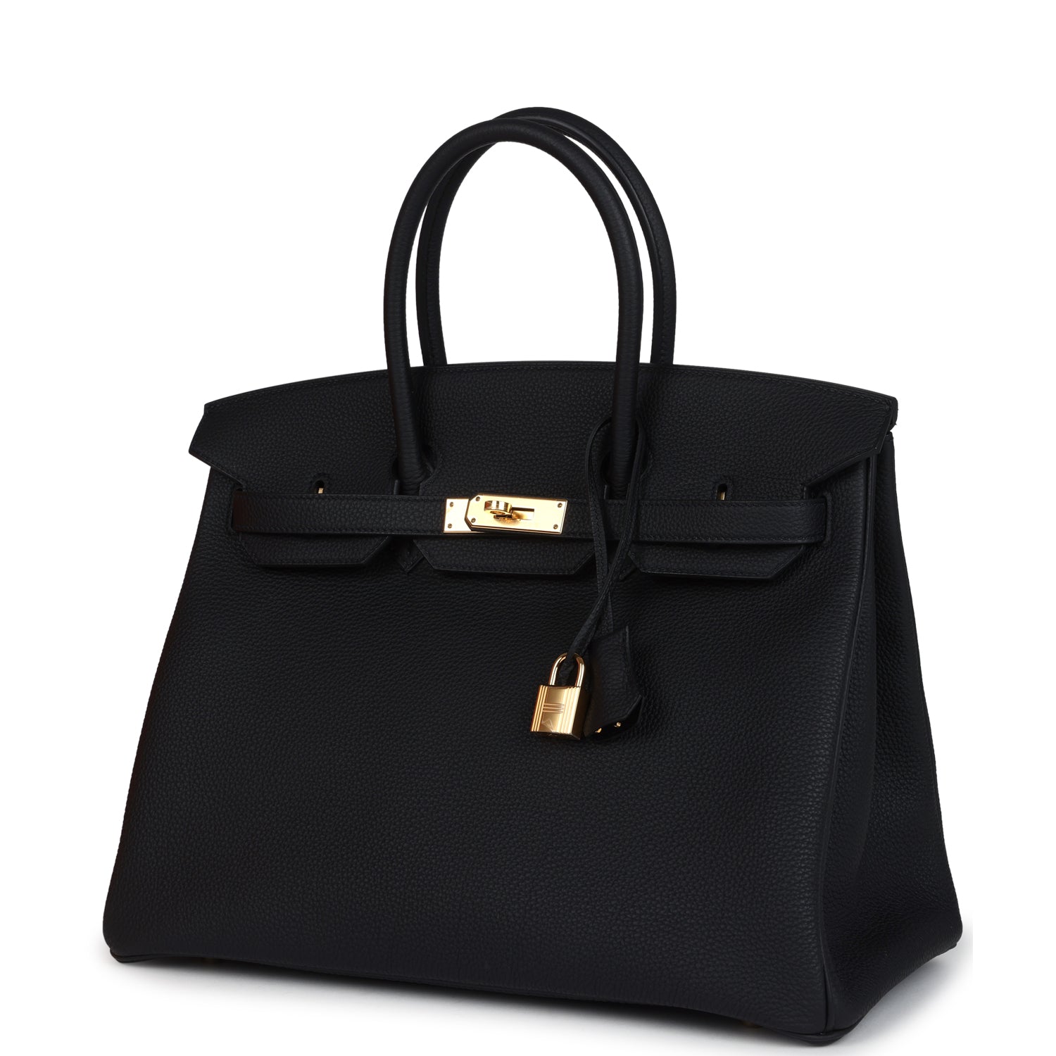 This Birkin is in Black togo leather with gold hardware and has tonal stitching, front flap, two straps with center toggle closure, clochette with lock and one key, and double rolled handles.