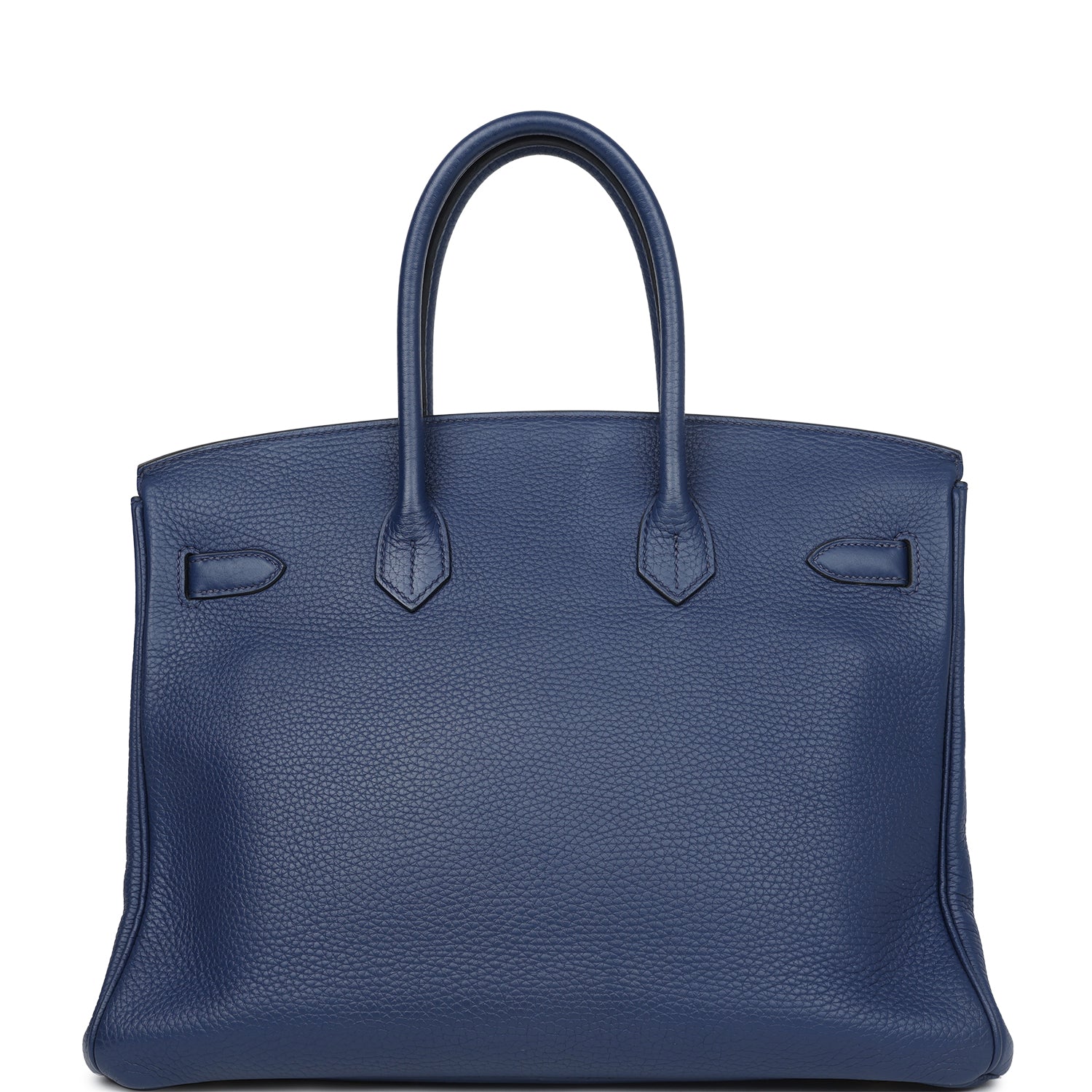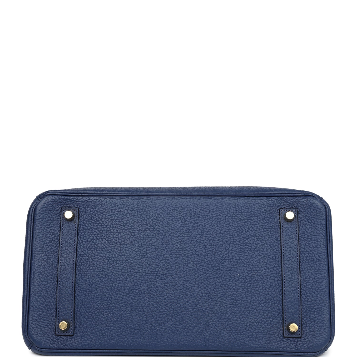 This Birkin is in Bleu Saphir clemence leather with gold hardware and has tonal stitching, front flap, two straps with center toggle closure, clochette with lock and two keys, and double rolled handles.