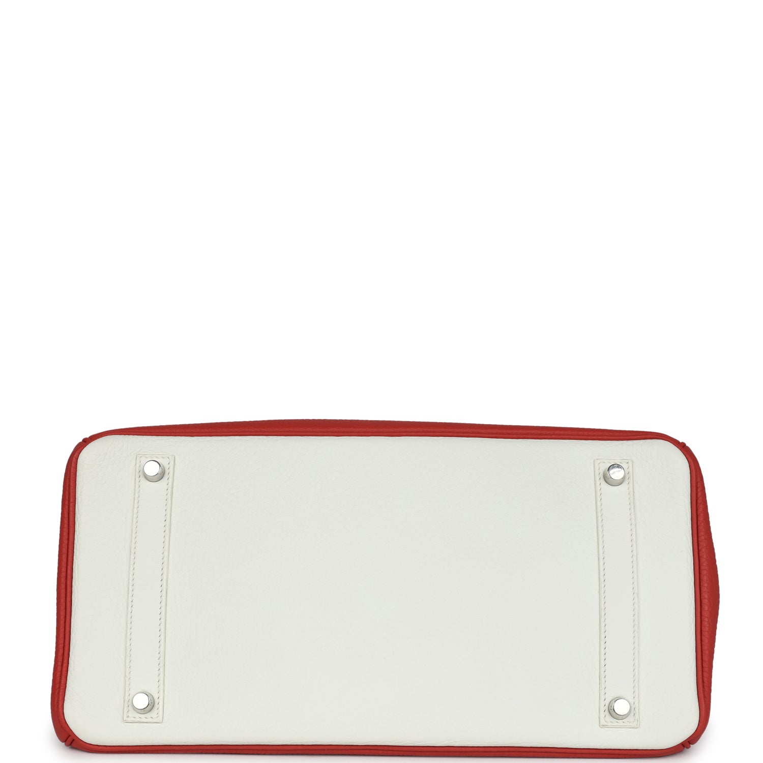 • Hermes Birkin 35 Eclat Sanguine and White Clemence Palladium Hardware
