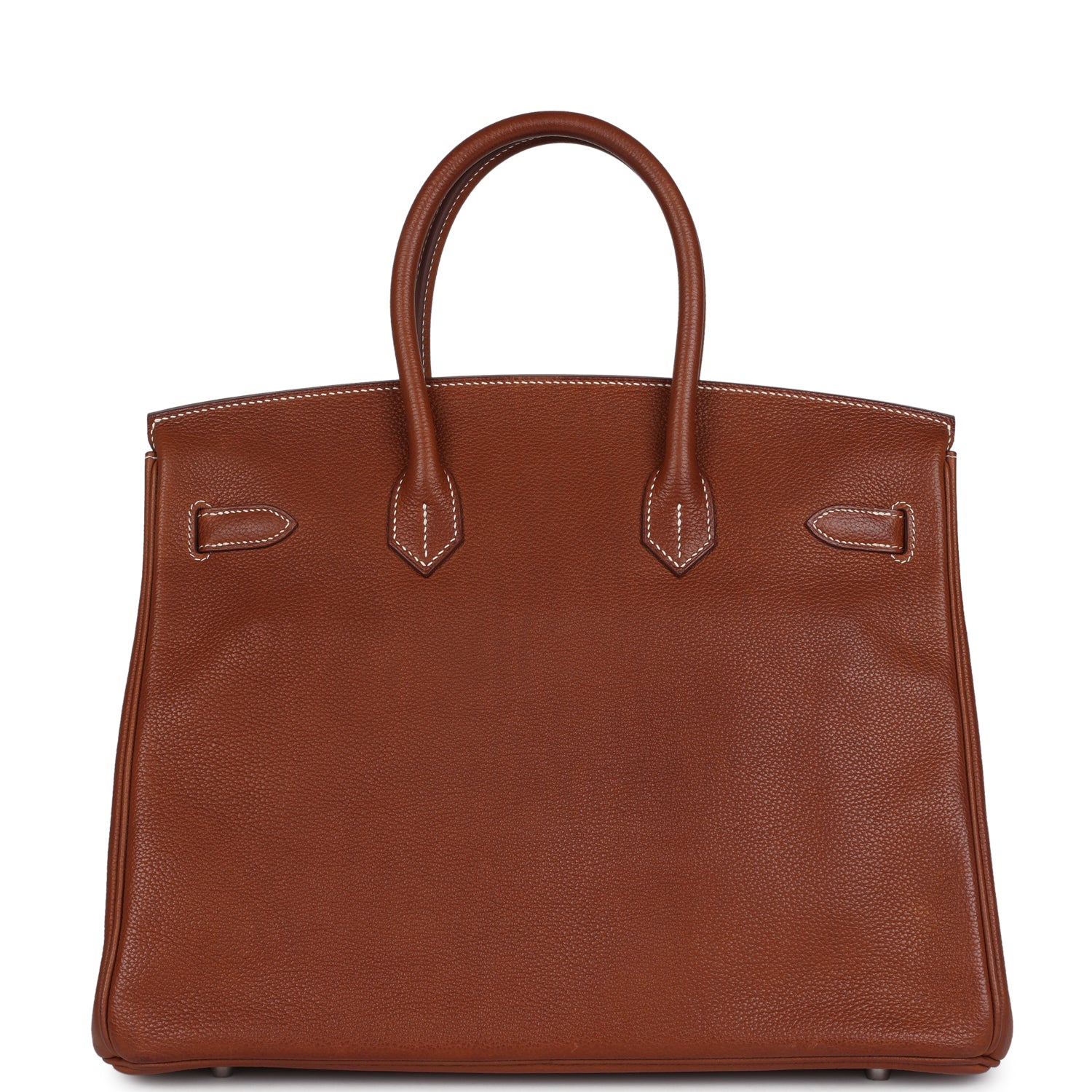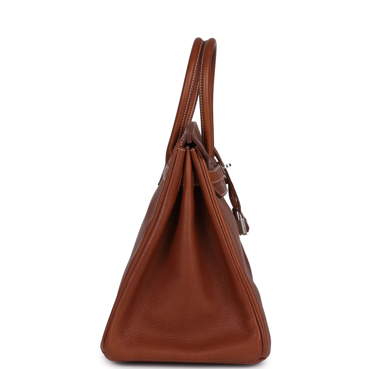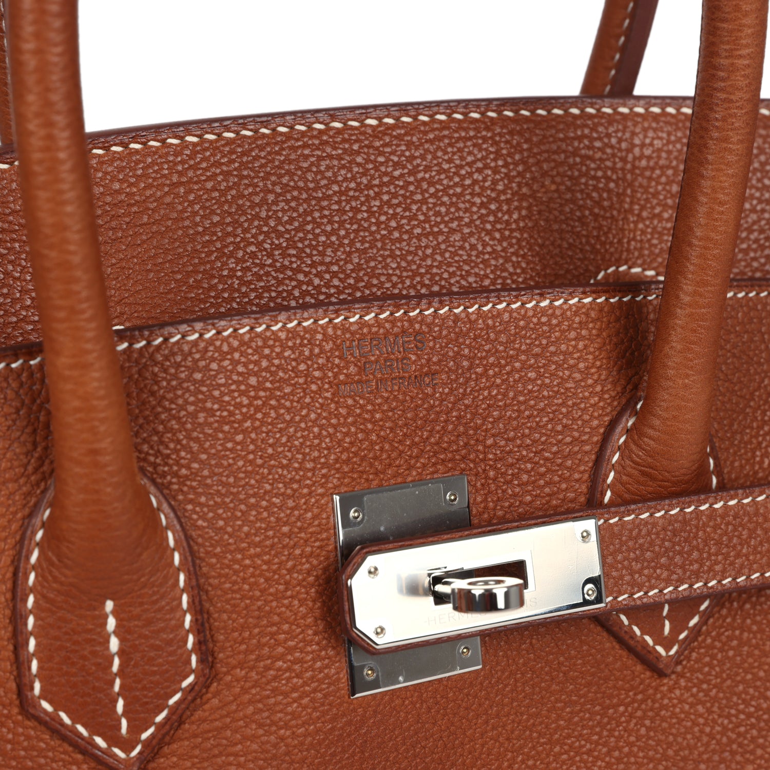 This Birkin is in Fauve Barenia Faubourg leather with palladium hardware and has contrast stitching, front flap, two straps with center toggle closure, clochette with lock and two keys, and double rolled handles.