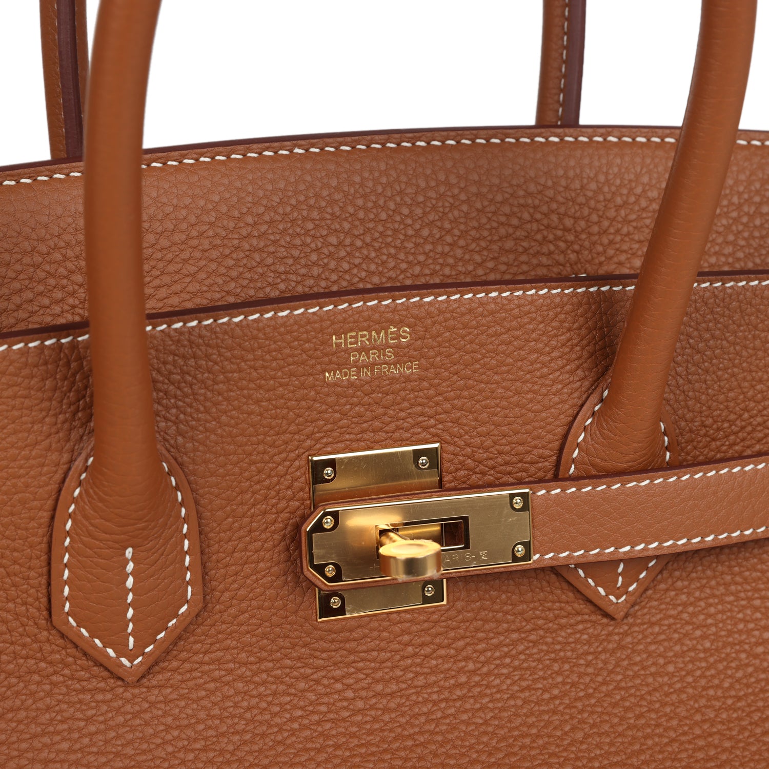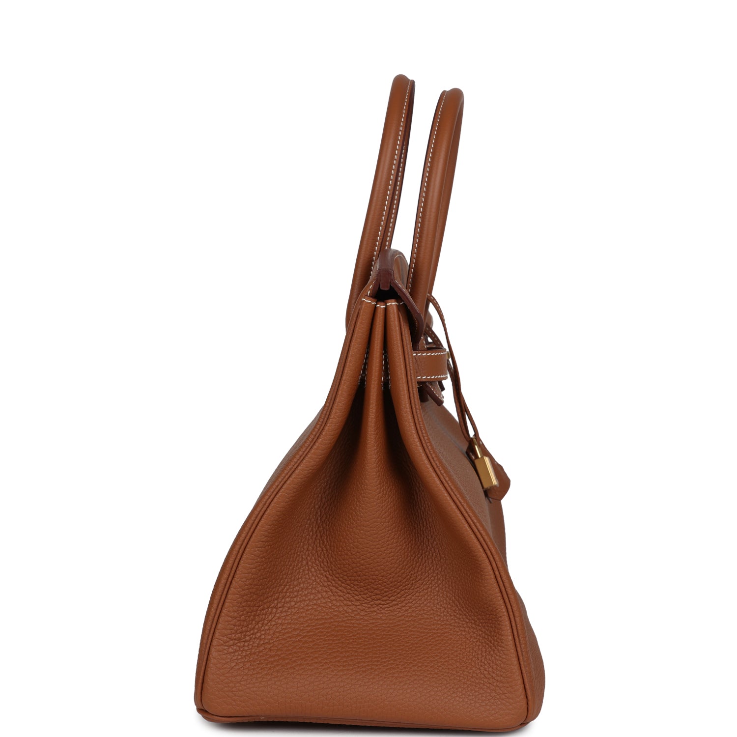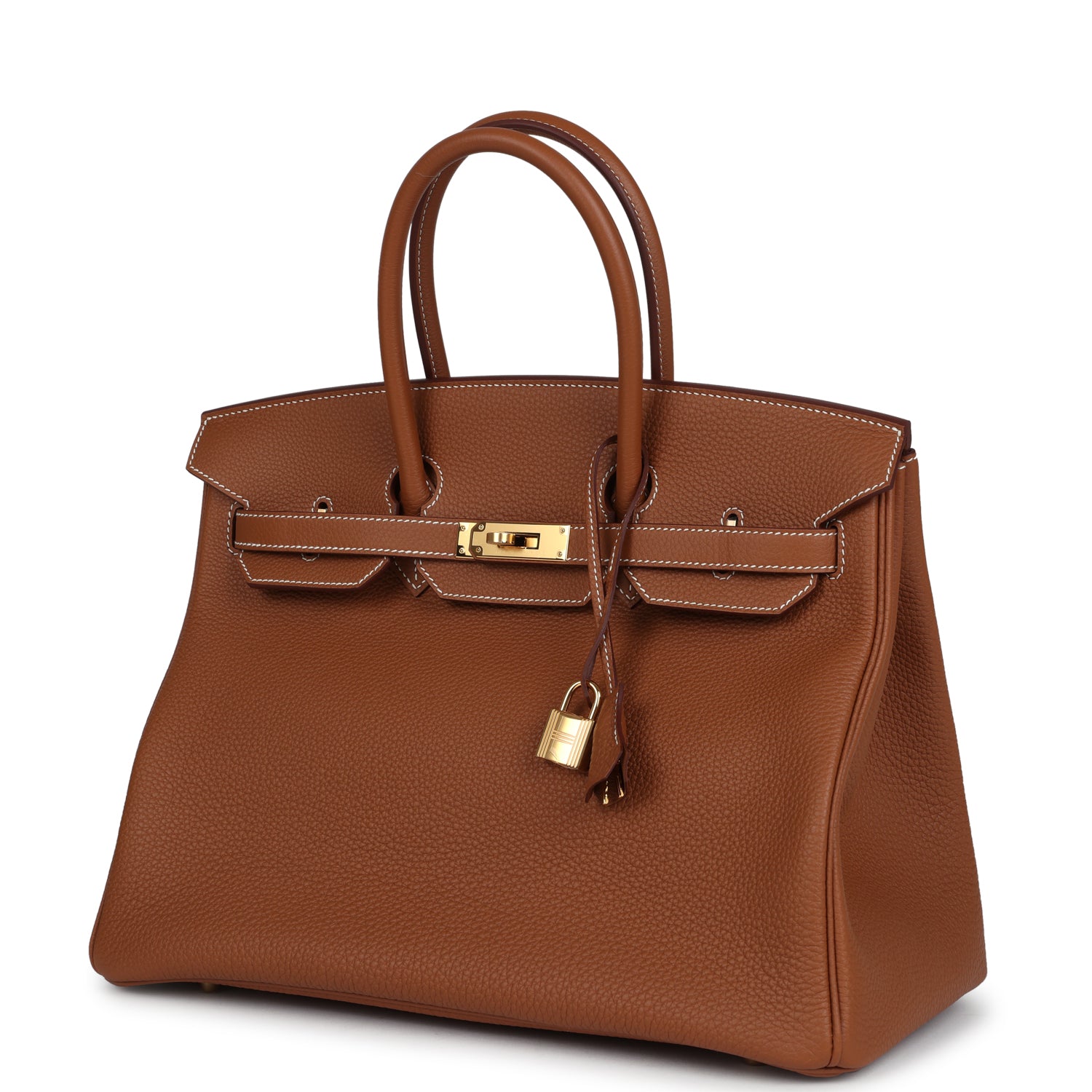 This Birkin is in Gold togo leather with gold hardware and has contrast stitching, two straps with front toggle closure, clochette with lock and two keys and double rolled handles.