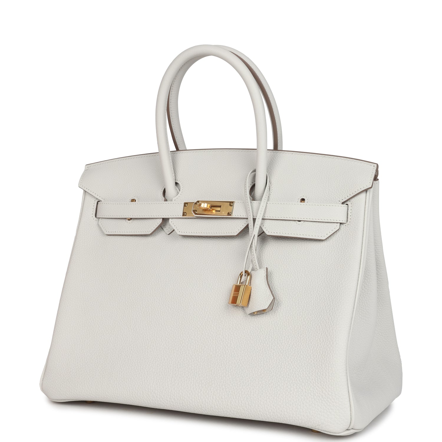 This Birkin is in Gris Pale togo leather with gold hardware and features tonal stitching, front flap, two straps with center toggle closure, clochette with lock and two keys and double rolled handles.