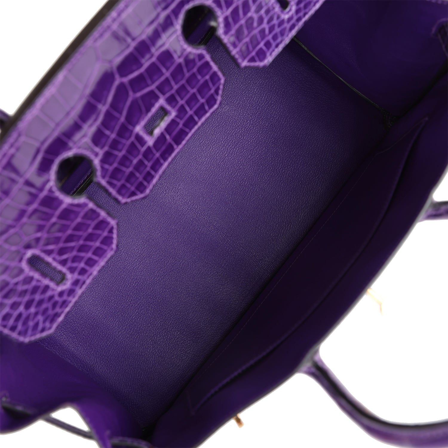 • Hermes Birkin 35 Ultraviolet Shiny Porosus Crocodile Gold Hardware