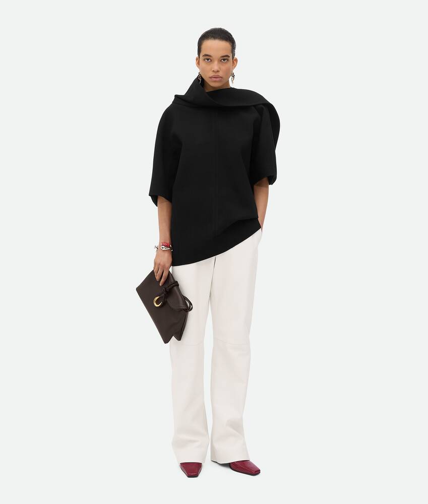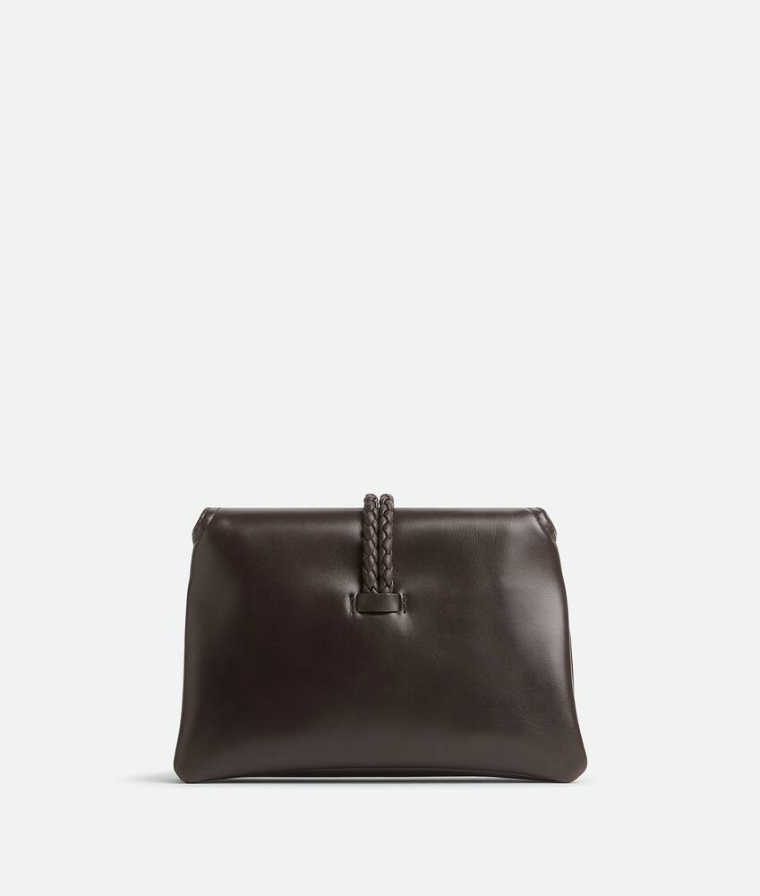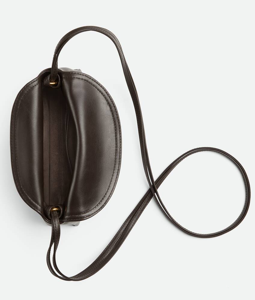 • Small cross-body bag in smooth calfskin leather with double flap and fastening system consisting of metal elements and coaxial cord