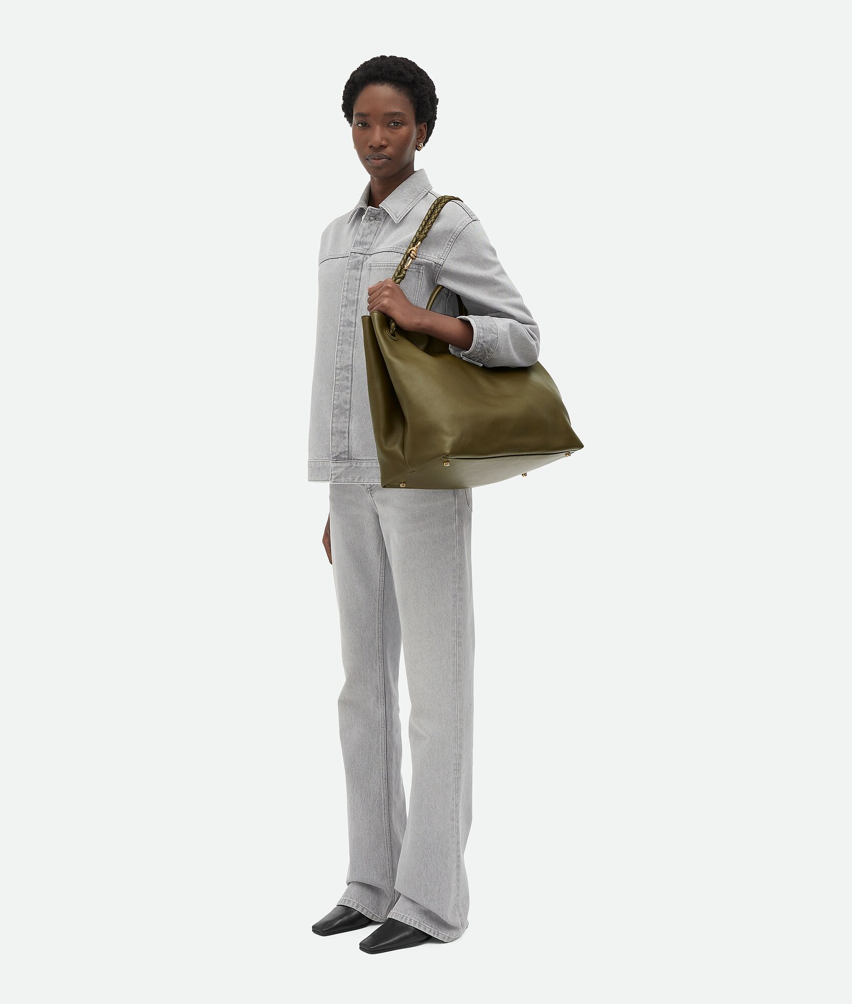 • Large silky calfskin top handle bag with sliding cross-body strap