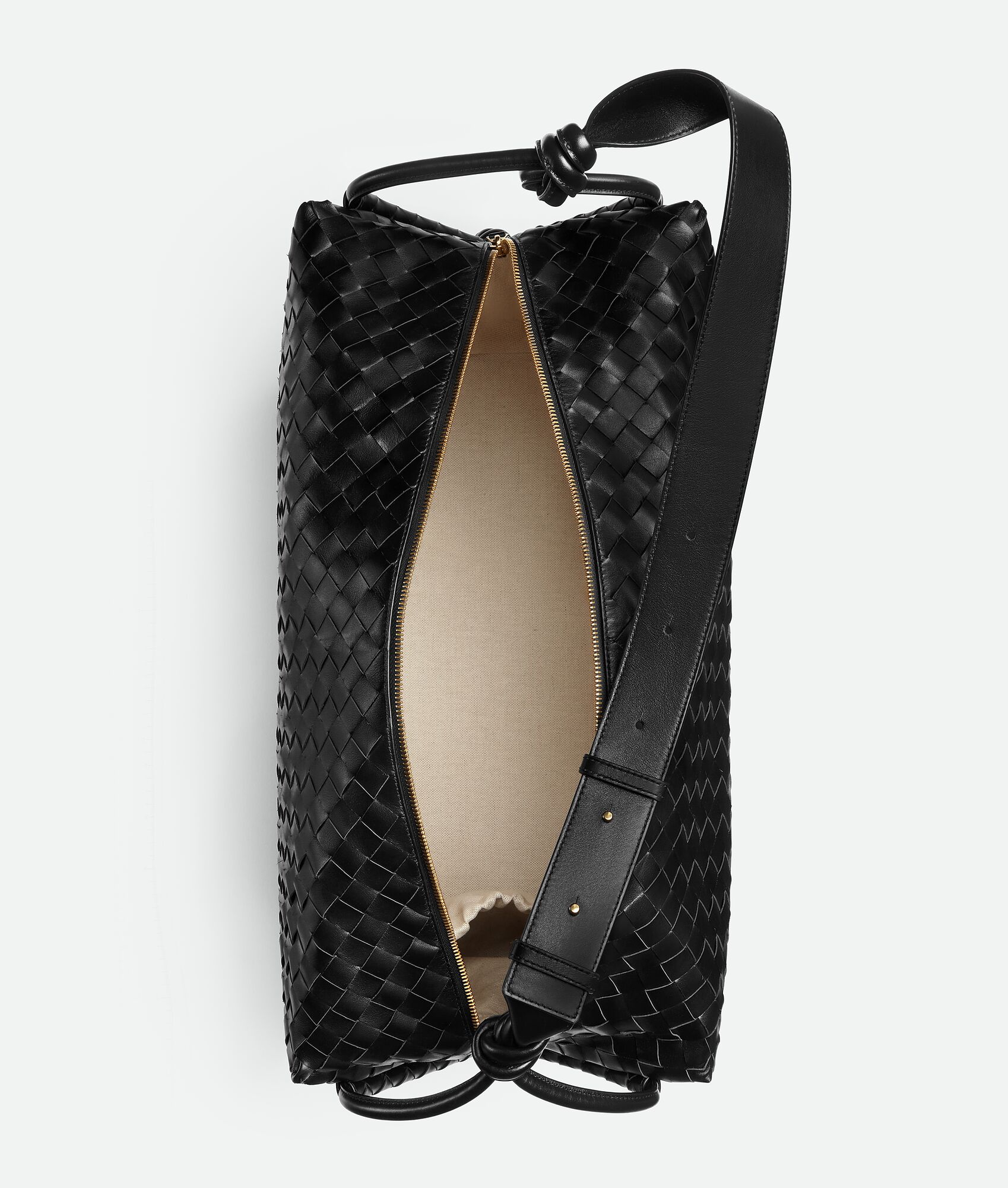 • Large Intrecciato leather weekender with smooth leather strap adorned with four handmade leather knots