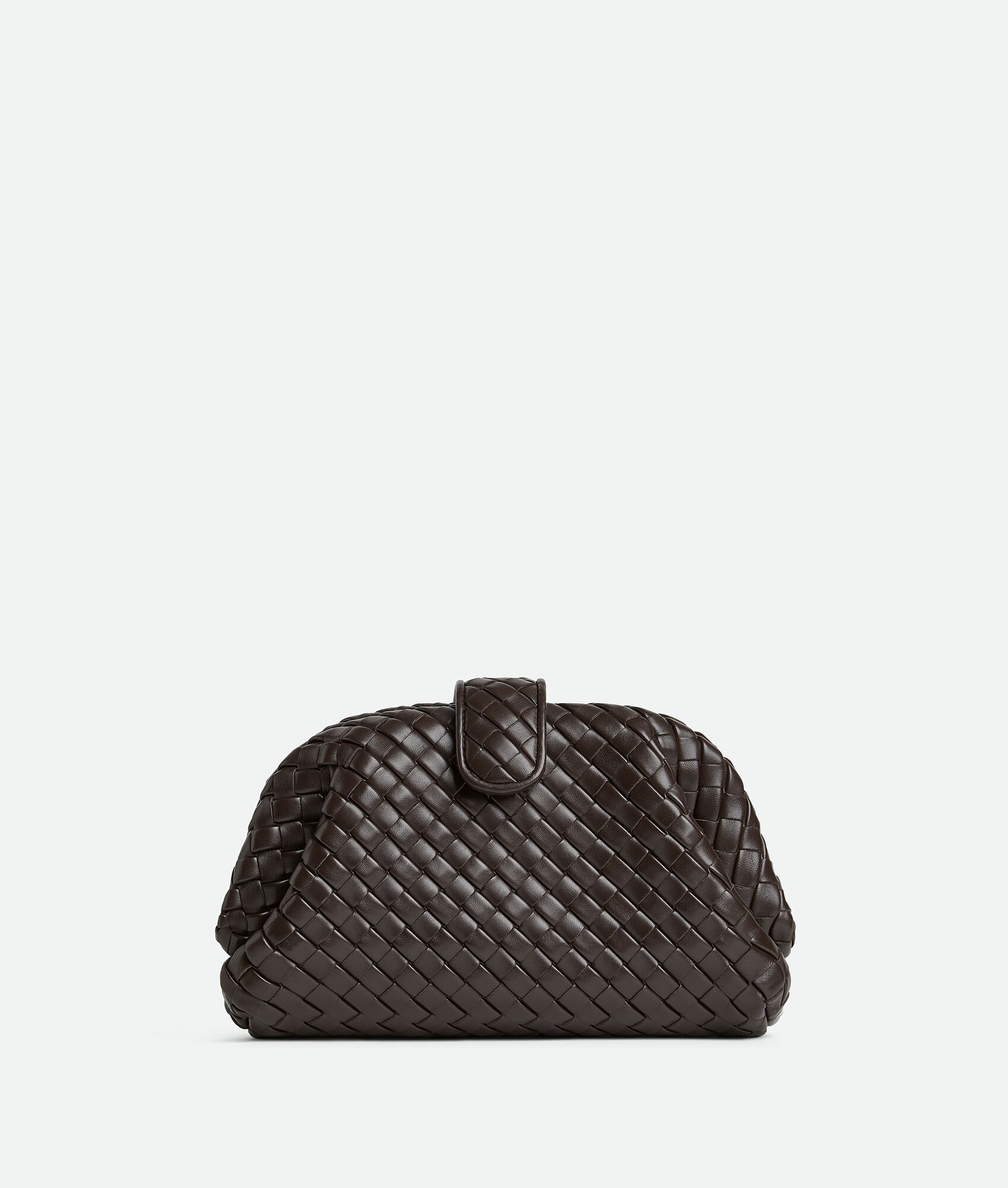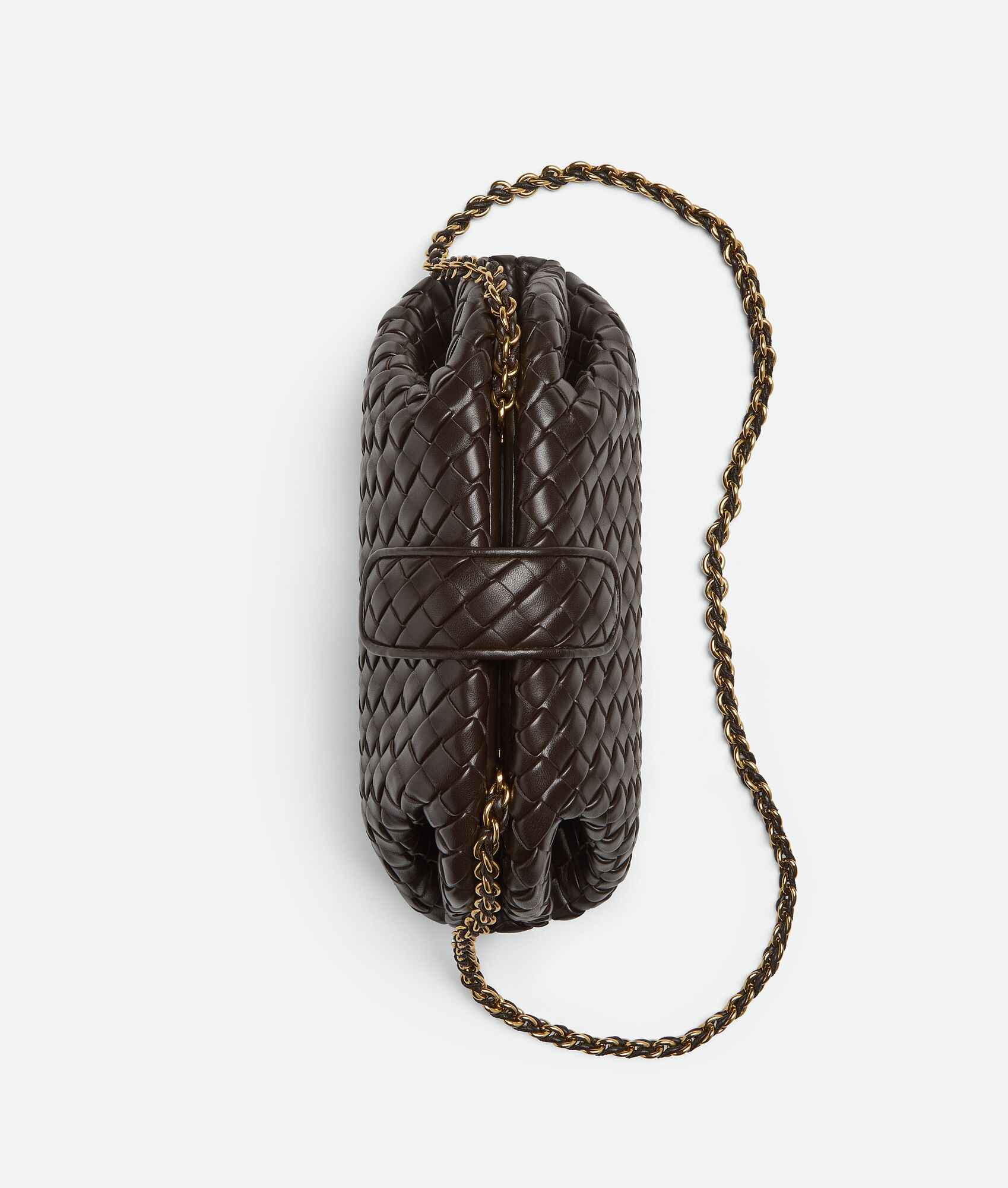 •Padded Intrecciato leather mini clutch with leather braided cross-body metal chain