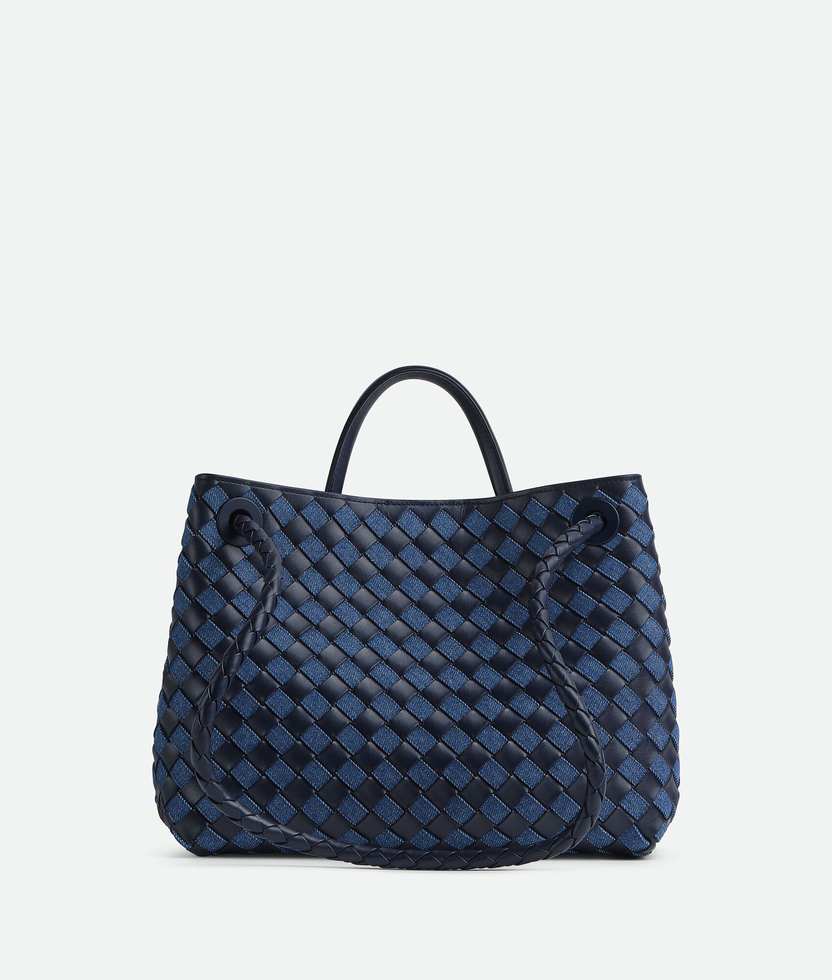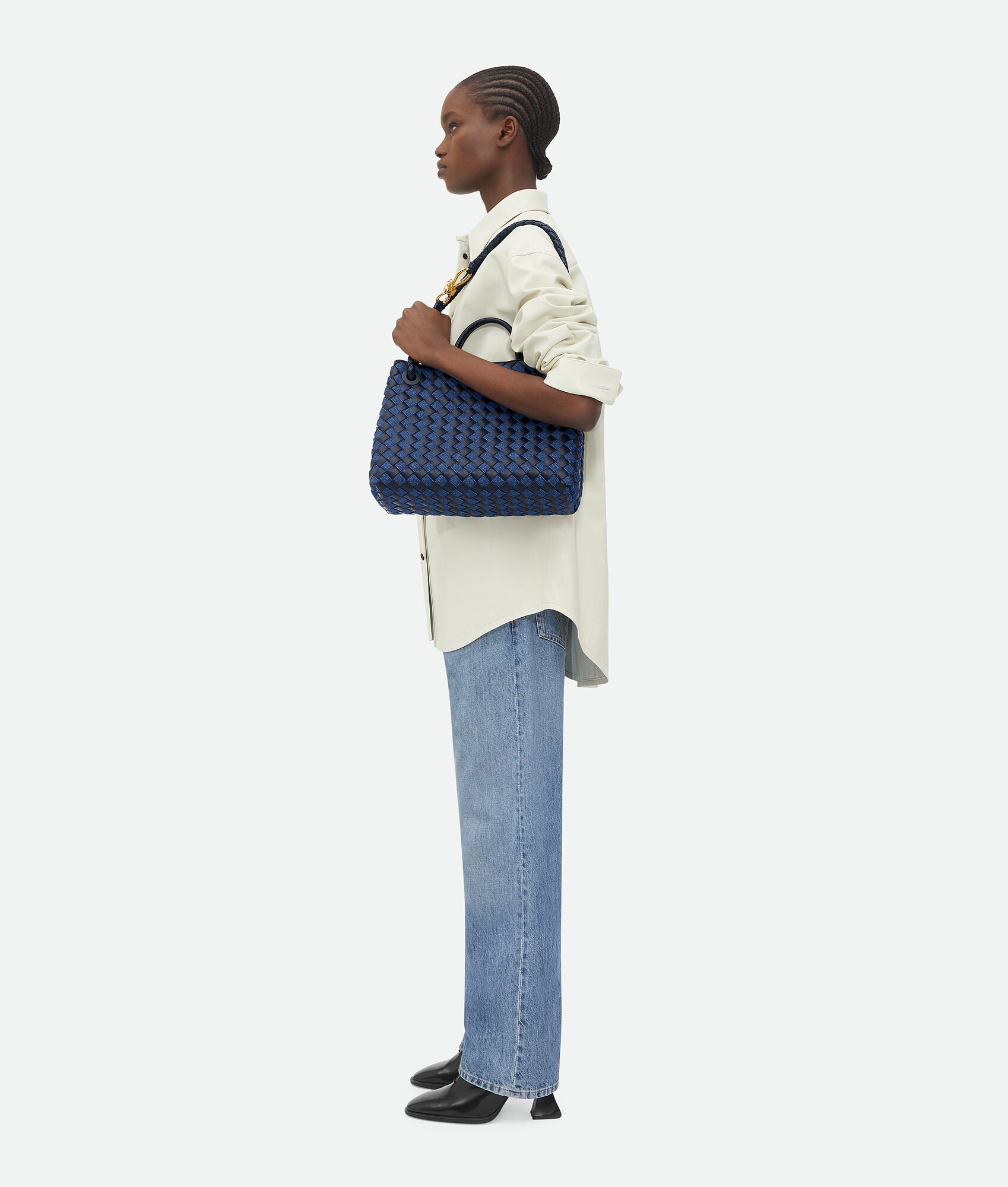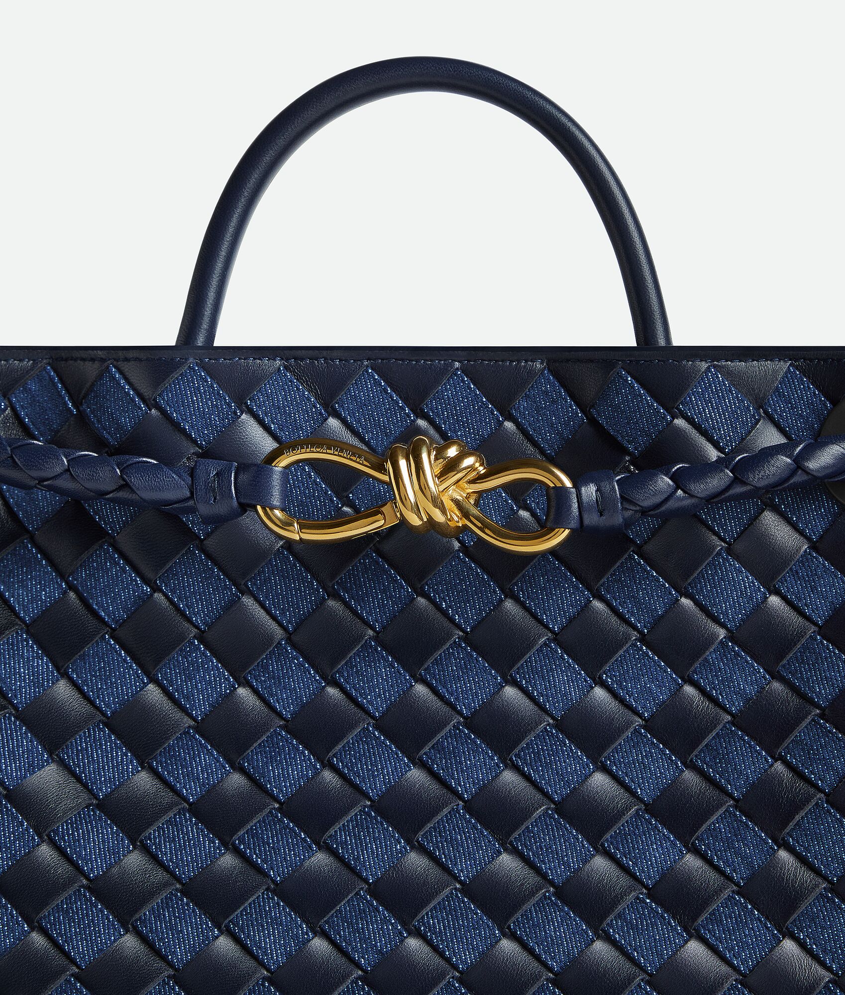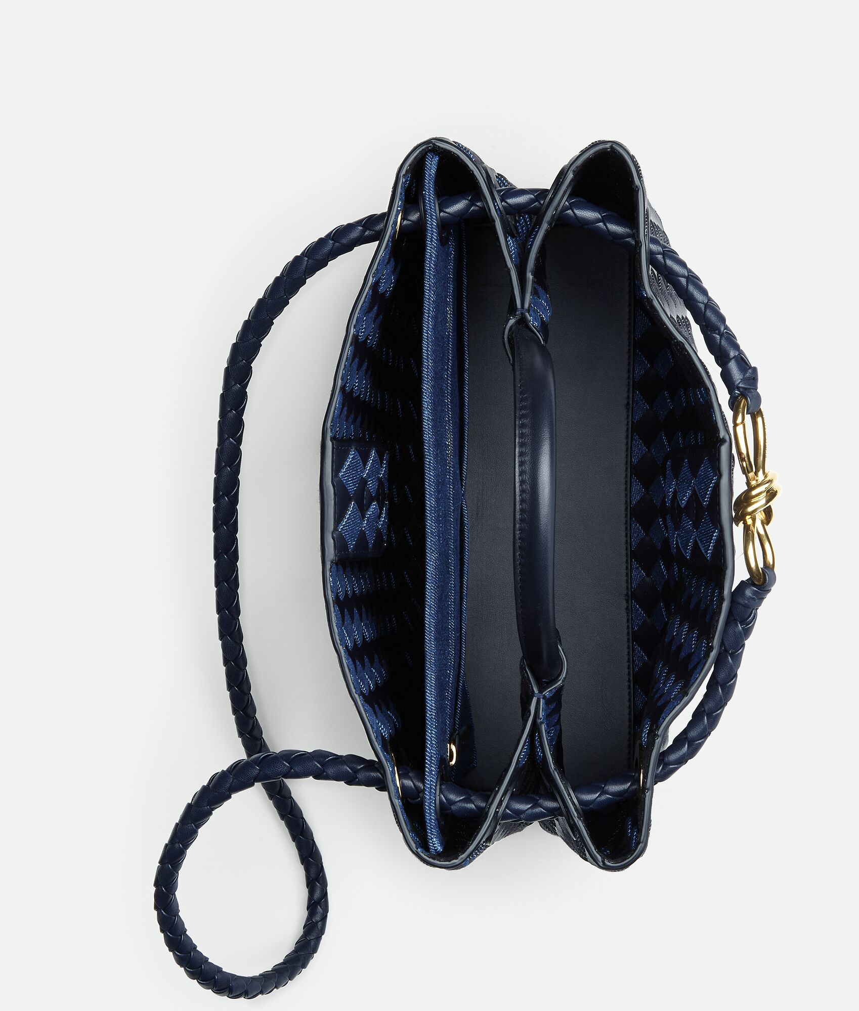 • Medium Intrecciato leather and denim top handle bag with sliding cross-body strap