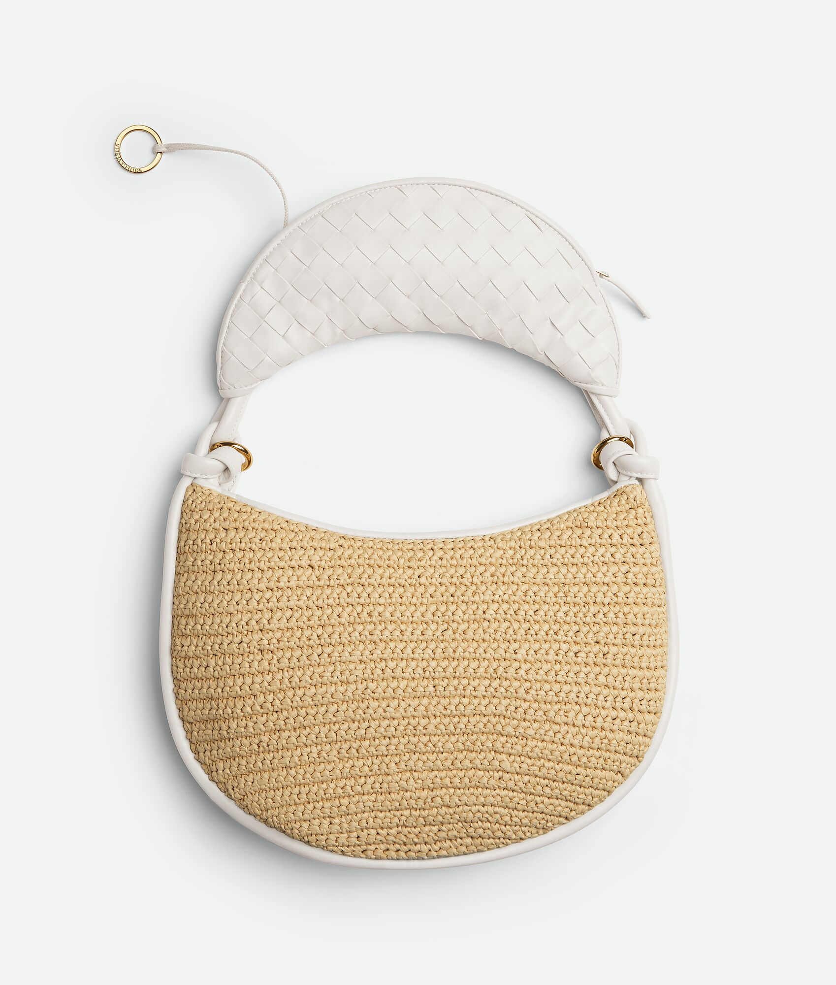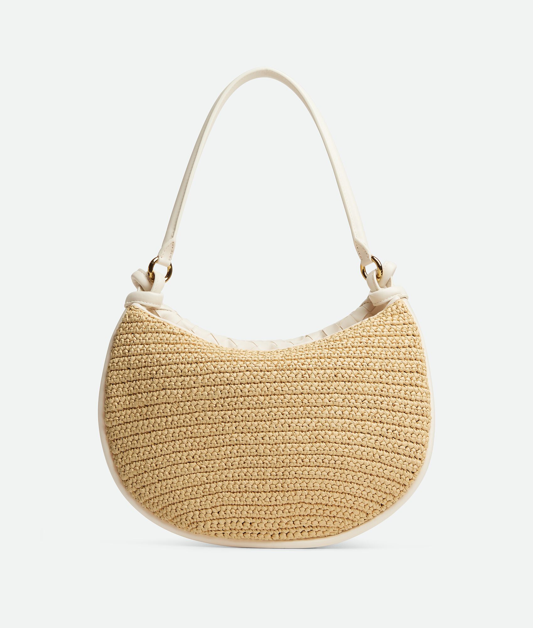 • Medium raffia crochet and Intrecciato leather shoulder bag