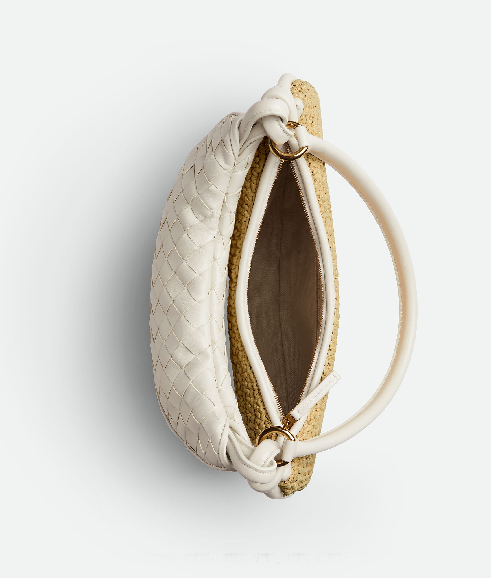• Additional half-moon zipped handle in Intrecciato leather