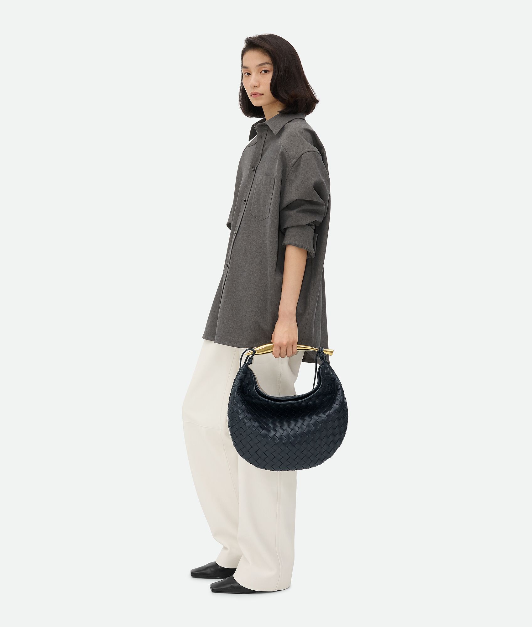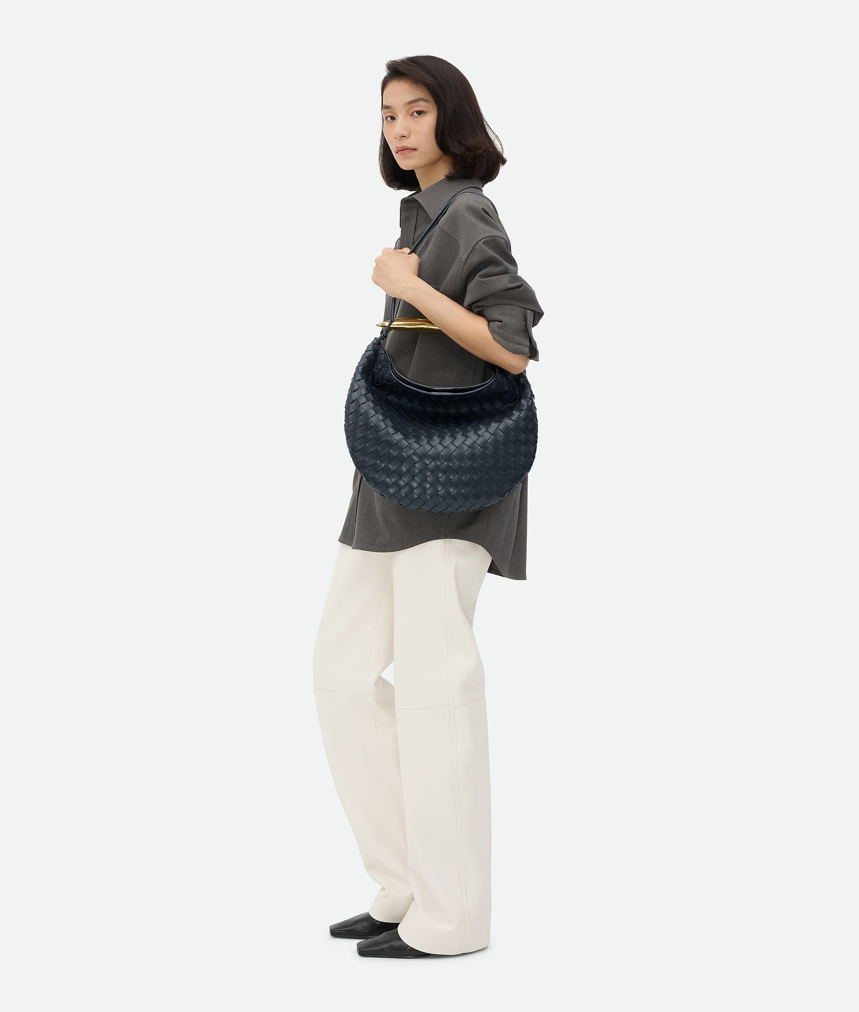 • Large Intrecciato leather shoulder bag with metallic top handle and leather shoulder strap