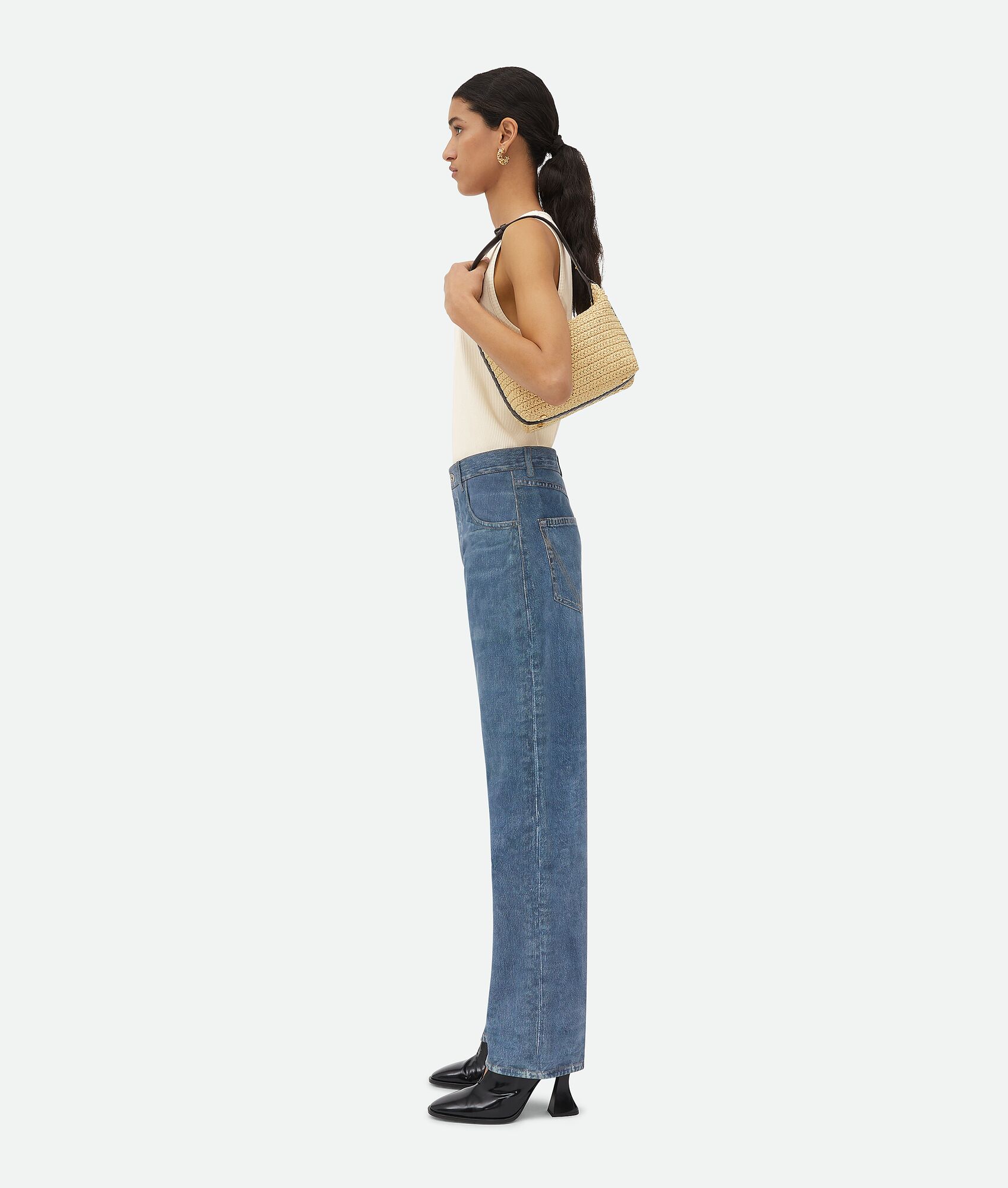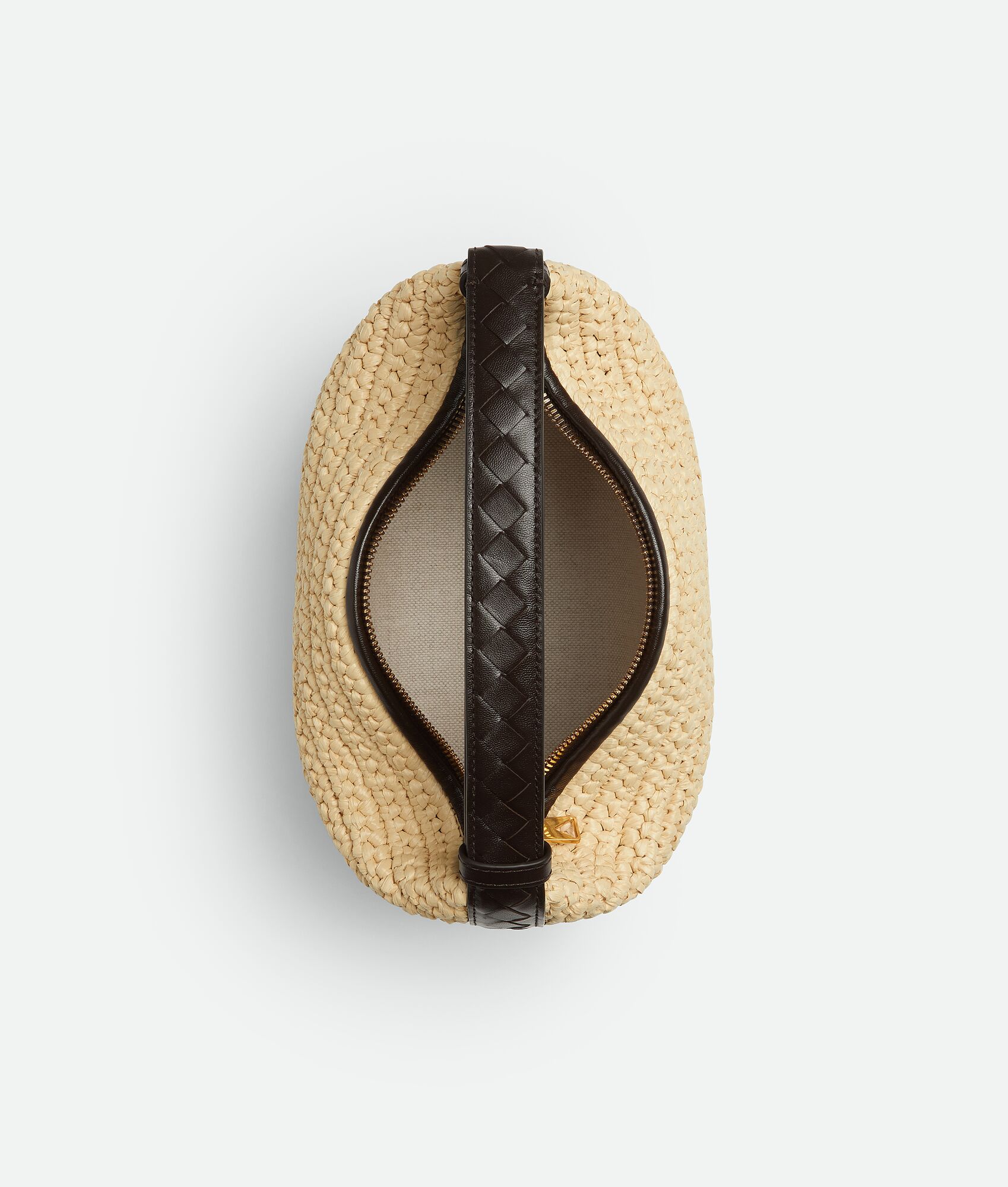 •Mini raffia crochet shoulder bag with Intrecciato leather handle