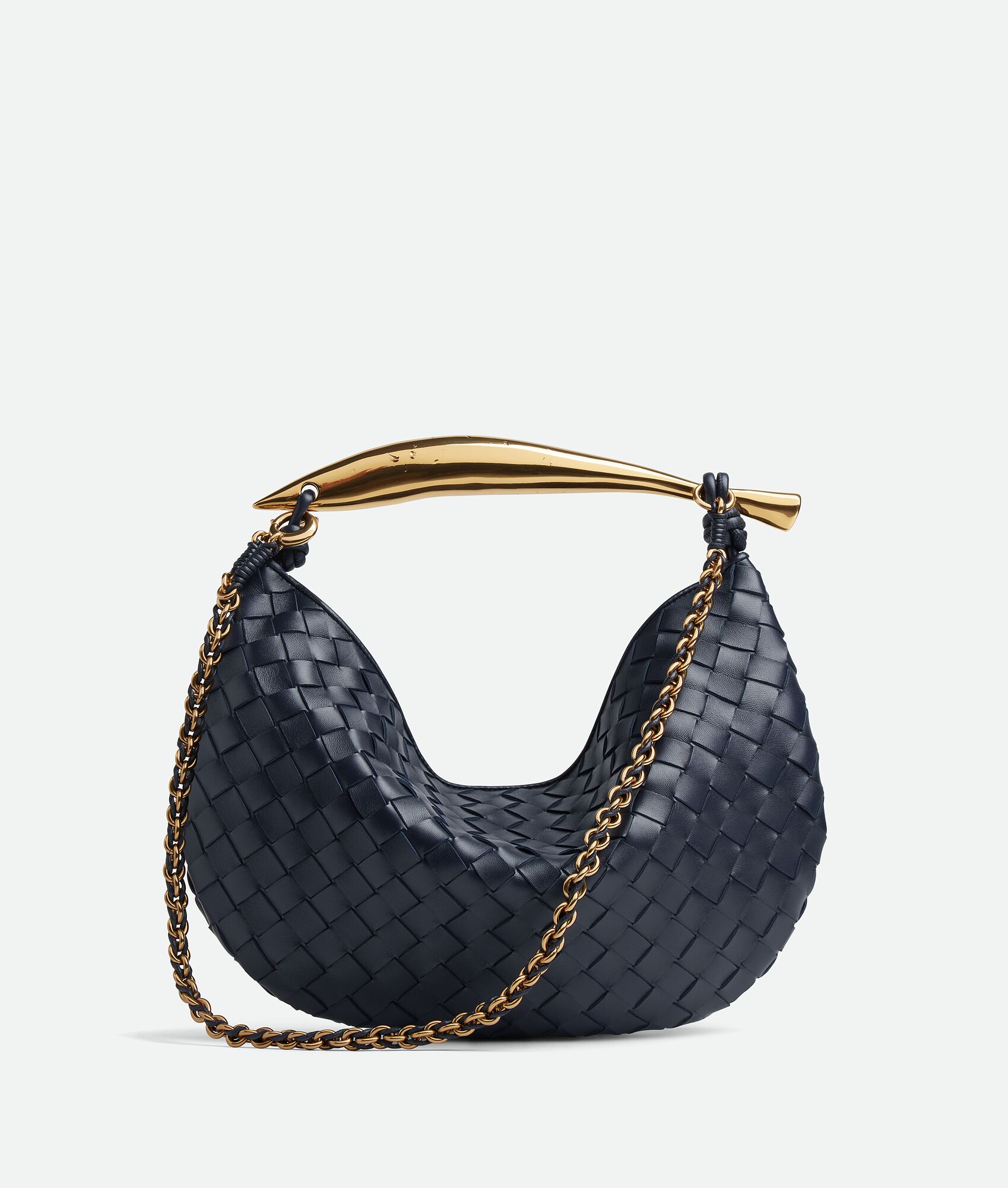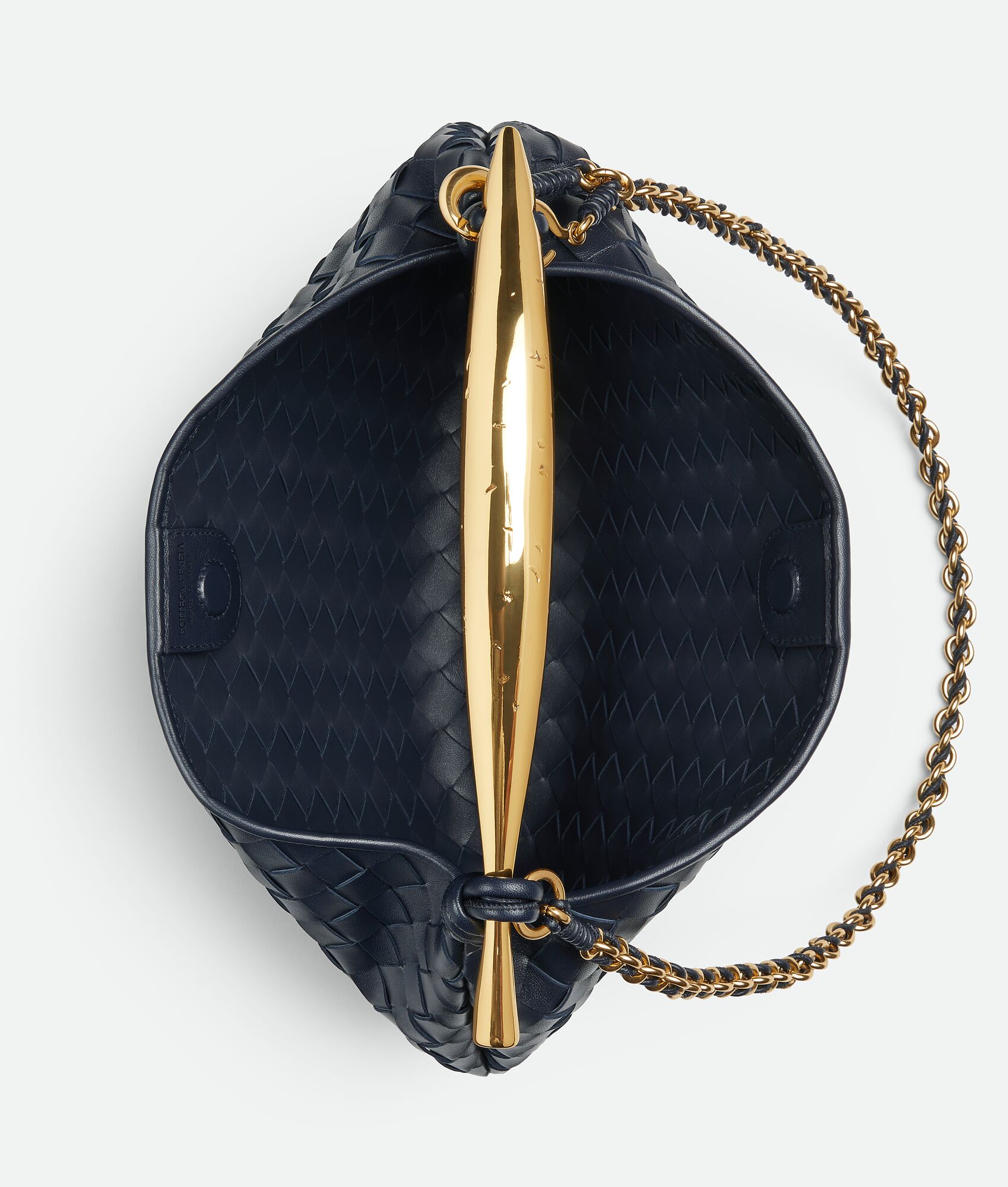 • Small Intrecciato leather bag with metallic top handle enriched by a braided leather shoulder chain