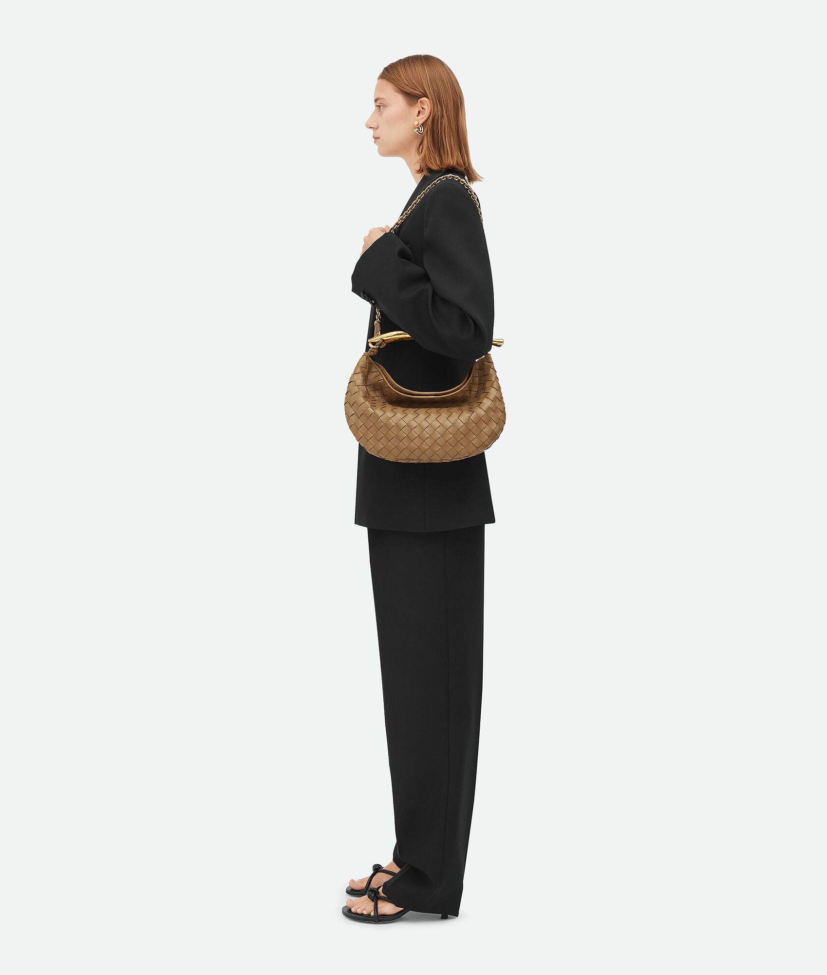 • Small Intrecciato leather bag with metallic top handle enriched by a shoulder braided leather chain