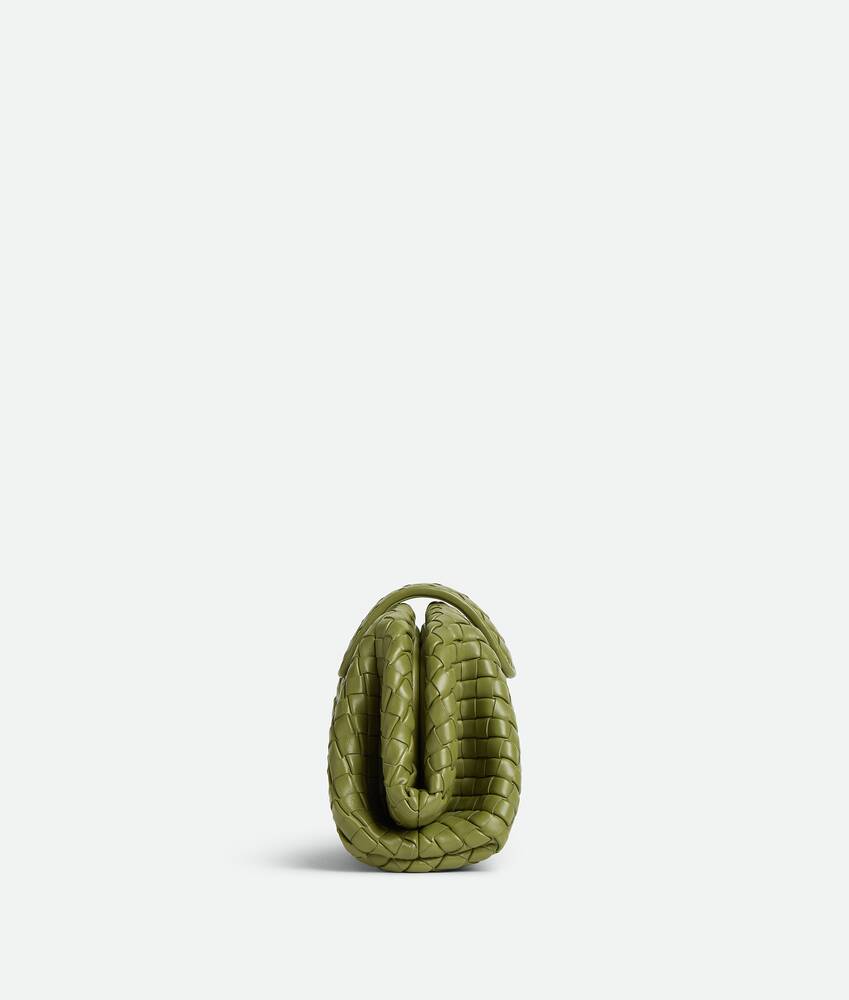 • Small padded Intrecciato leather mini clutch with leather braided cross-body metal chain