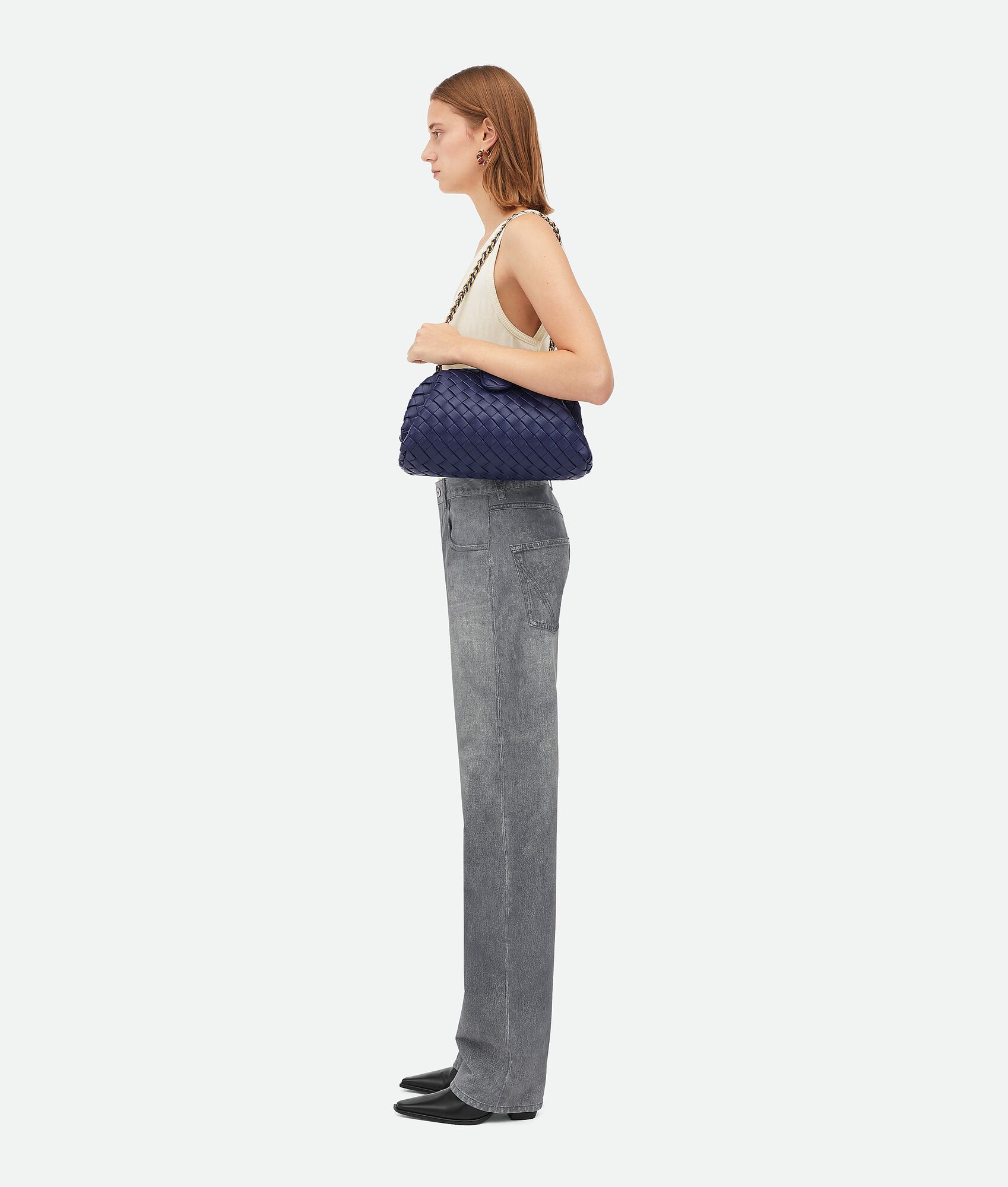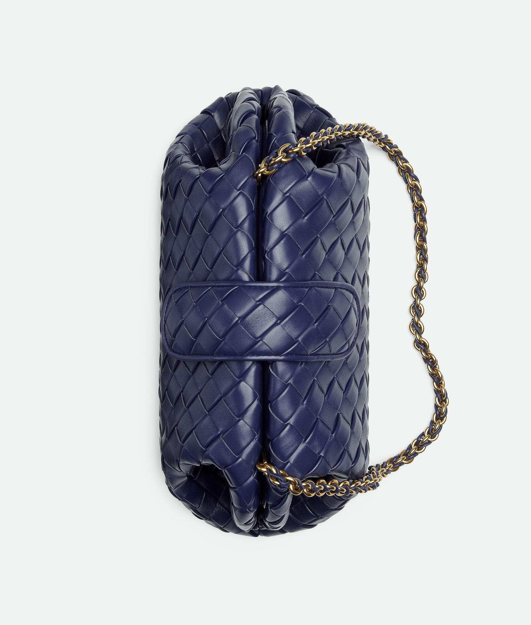 • Padded Intrecciato leather teen clutch with leather braided metal chain