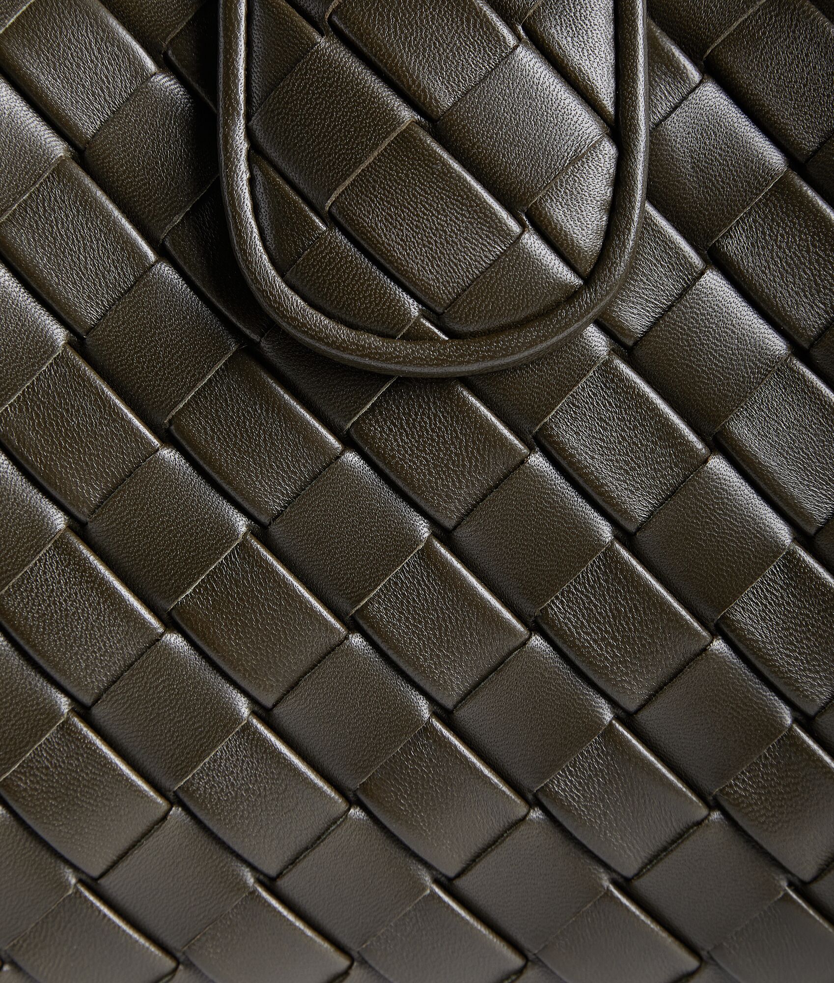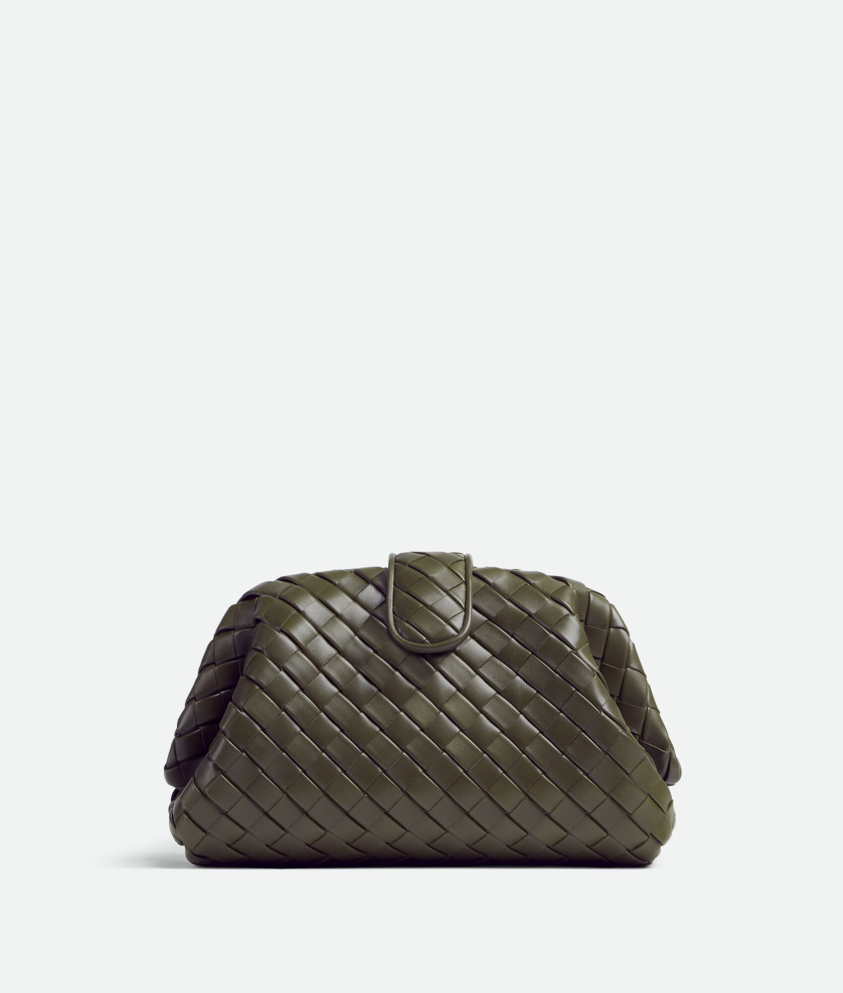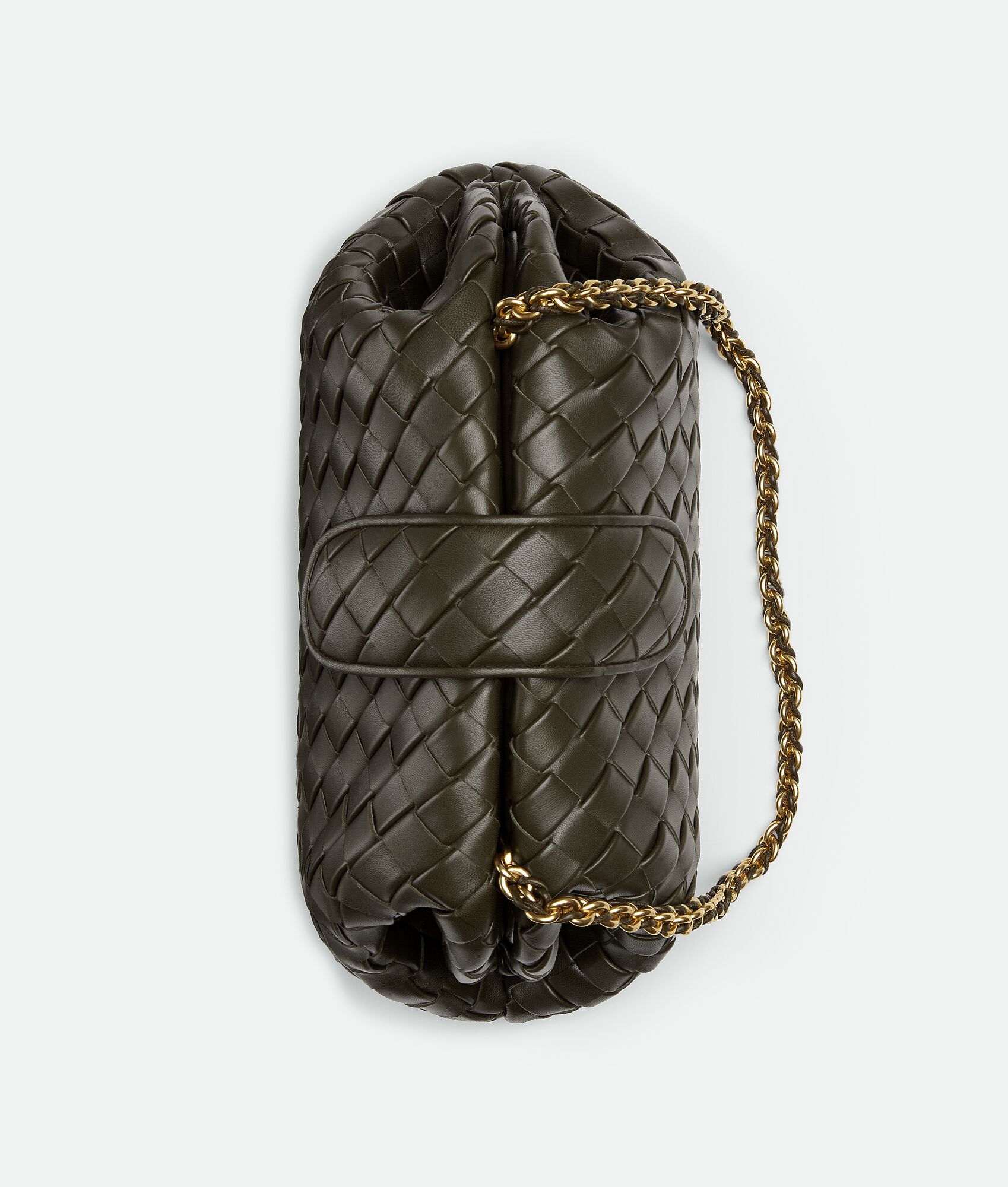 • Padded Intrecciato leather teen clutch with leather braided metal chain